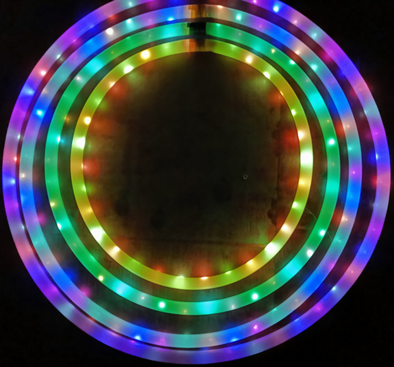 闪光呼啦圈在原来的管子的基础上装上led,有30颗电子灯,开光一按便会发出绚烂色彩,有三种灯光可以调节,操作简单方便到手即可用,管子加粗加厚,儿童和成人皆宜,欢迎采购。