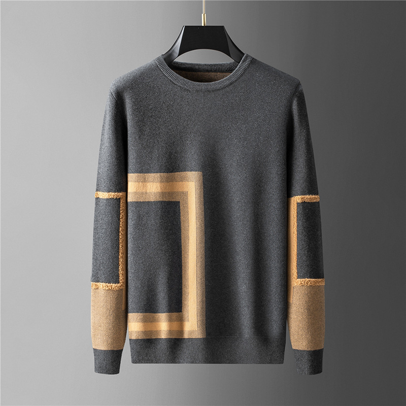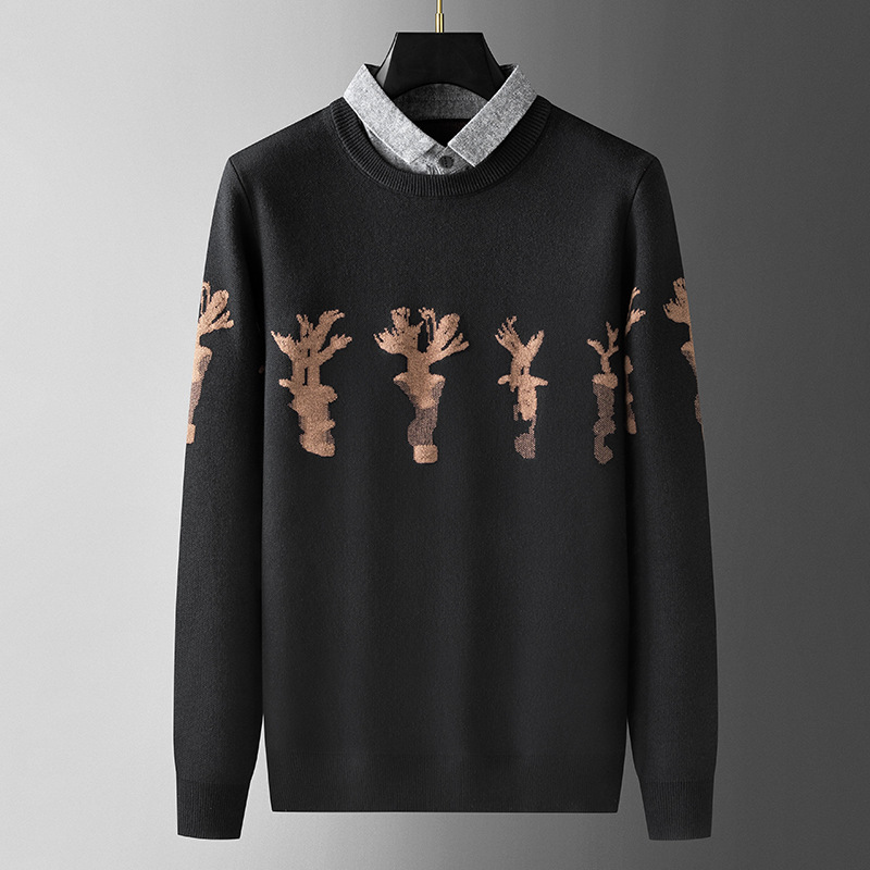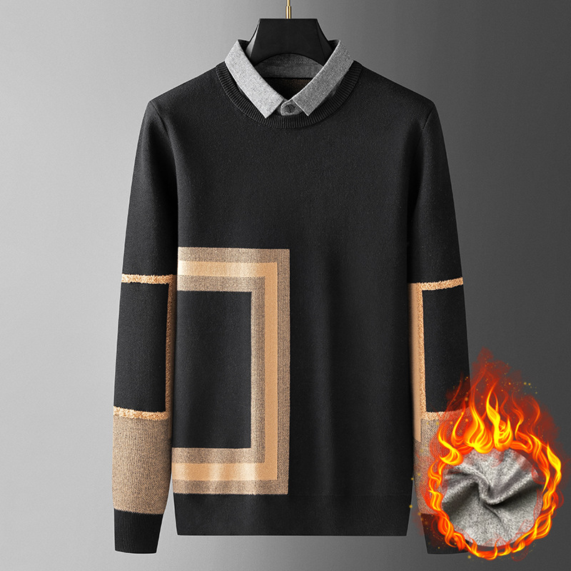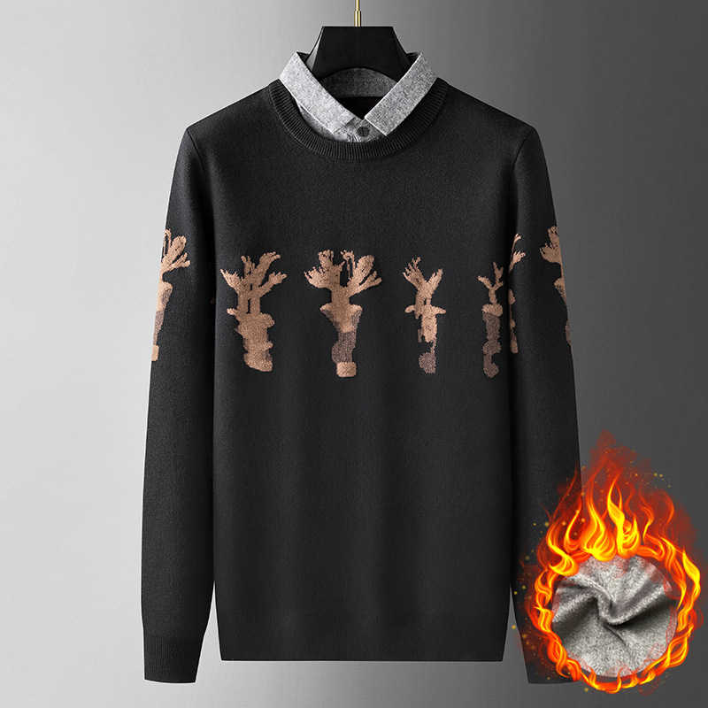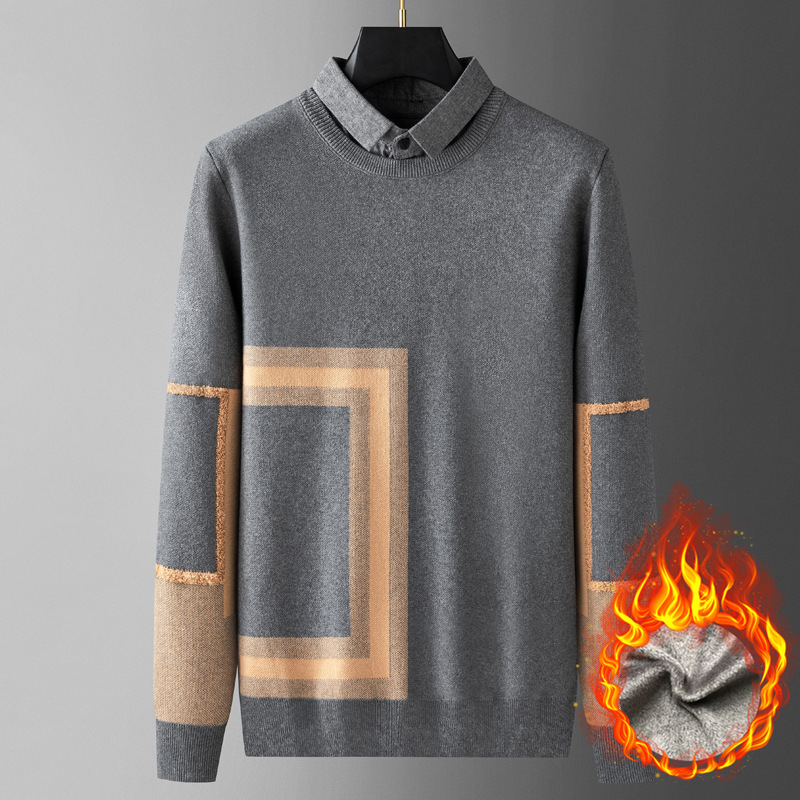 Осенне-зимний утолщенный хлопковый свитер с воротником-стойкой из искусственного меха для мужчин, облегающий трикотажный трикотаж с защитой от катышков, оптом для молодых мужчин.