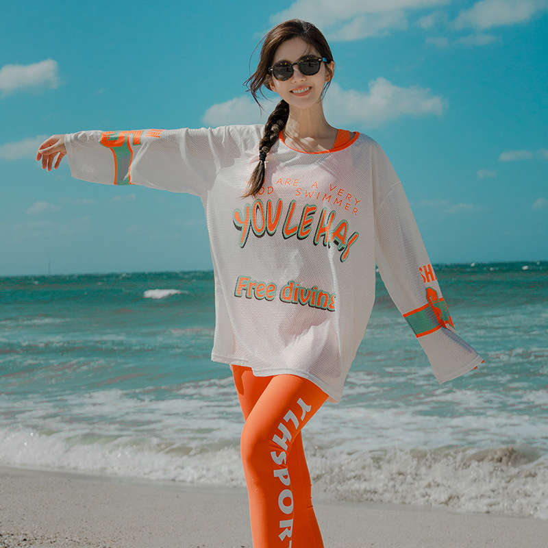 Купальники в Корейском стиле, женские брюки с разрезом и длинными рукавами, комплект из четырех предметов, прикрывающий живот, для похудения, консервативный спортивный стиль в Instagram, японско-корейский стиль 2021