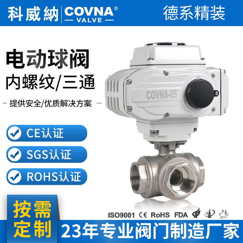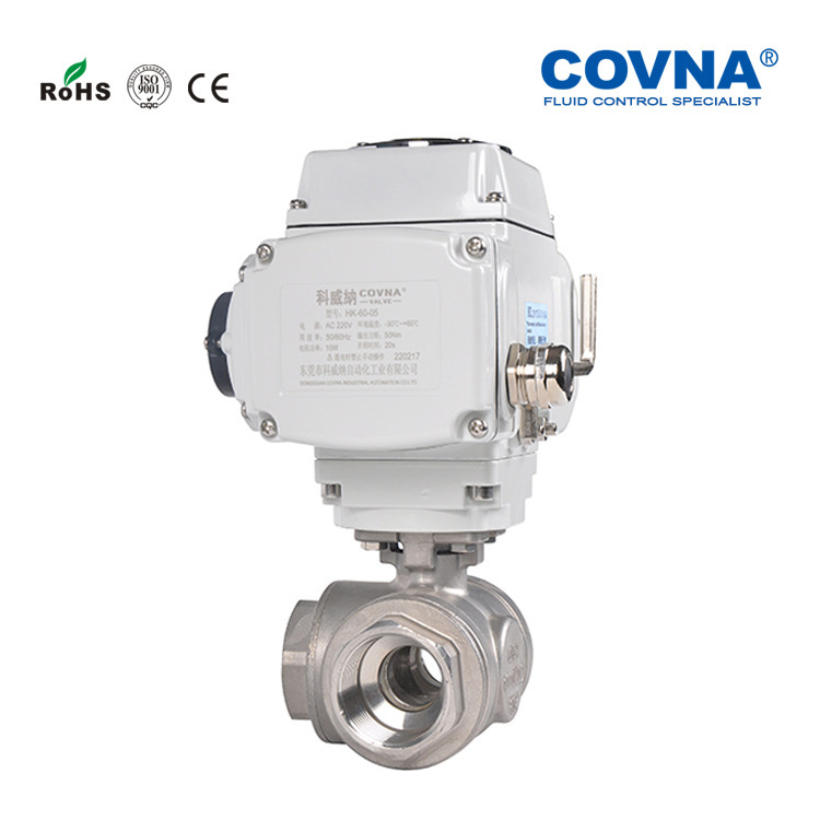 Электрический трехходовой шаровой кран COVNA из нержавеющей стали 304L, тип T, с внутренней резьбой, интеллектуальное управление