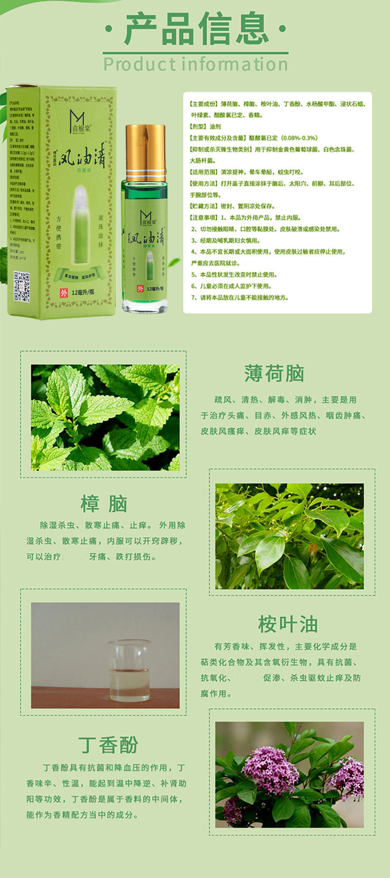 Производитель поставляет охлаждающее масло Miao Yutang Fengyoujing в роликовой упаковке, 12 мл, для пробного использования, подходит для лечения укусов комаров, укачивания и укачиваниясь в дороге, в наличии.