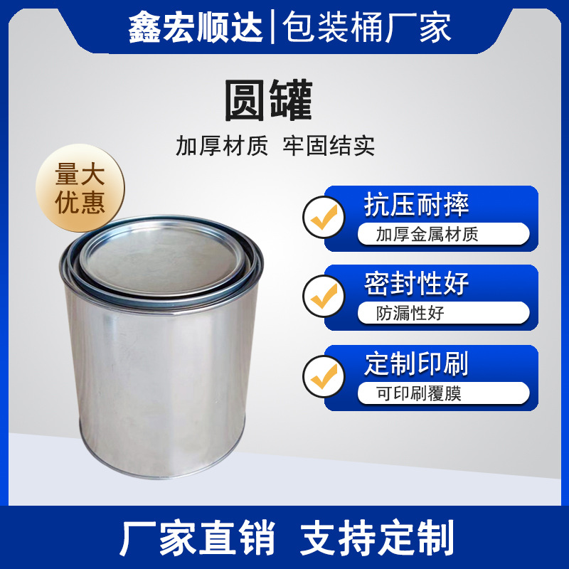 圆桶包装桶 金属桶1升圆桶马口铁油漆桶圆罐压盖金属包装桶铁桶