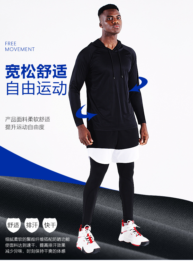 Мужская Солнцезащитная одежда с капюшоном и длинными рукавами, топ для фитнеса Для Рыбалки На Открытом Воздухе Быстросохнущая одежда для бега, осень и зима, баскетбольная тренировочная одежда