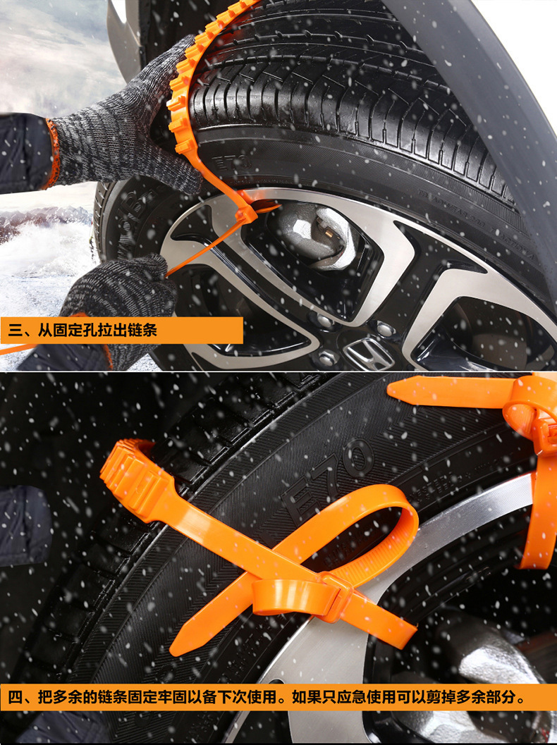 Цепи противоскольжения класса А с двойными зубьями красного цвета [Материал высокого давления]; Цепь противоскольжения с двойными зубьями оранжевого цвета класса А.