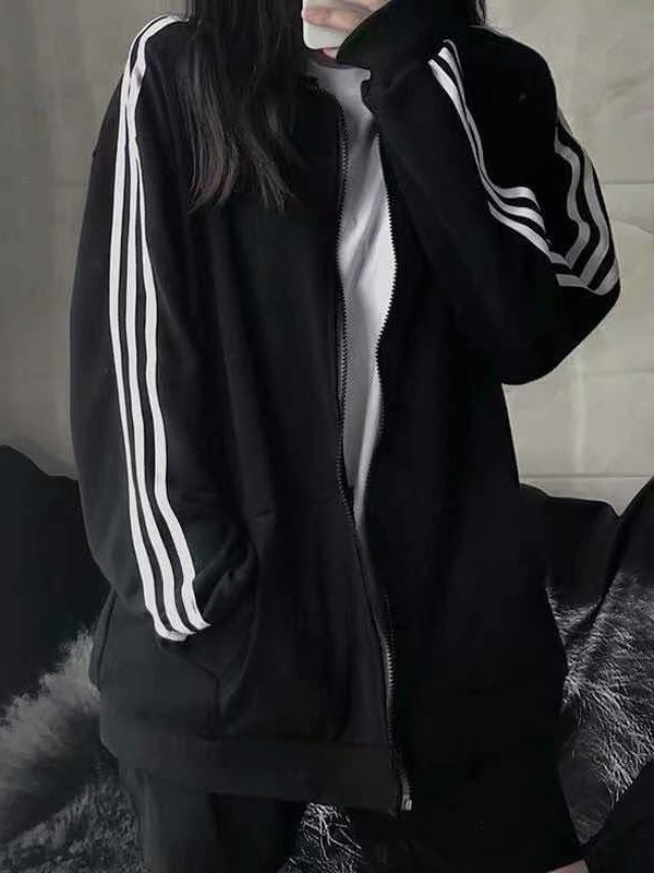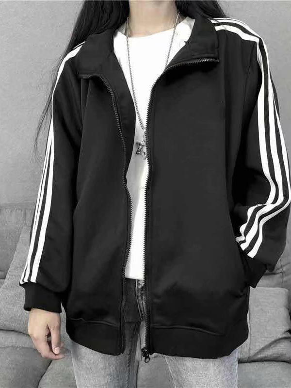 Новая женская куртка с тремя полосками весна-лето 2024, тонкая куртка в корейском стиле, черная студенческая бейсбольная куртка, свободный крой в стиле BF