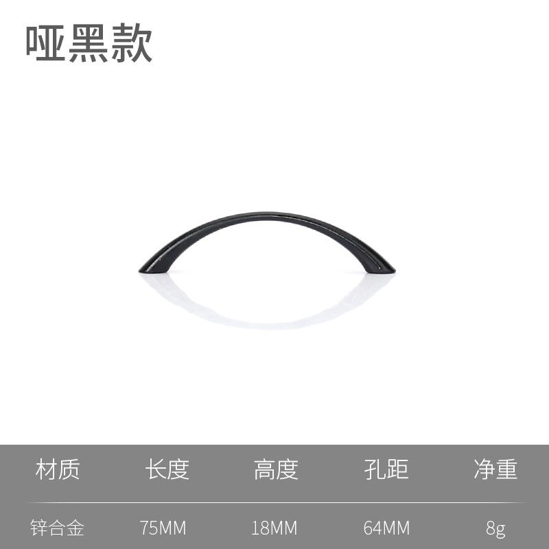 Ручка дверной ручки шкафа Современный минималистский цинковый сплав дуга черный маленький ручка шкаф шкаф ящик шкафа ручка