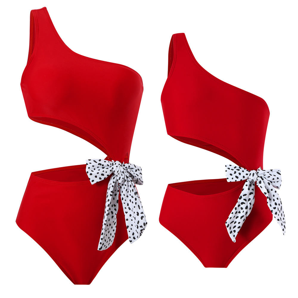 Родительский цельный купальник женский 2024 новый косый плечо с открытой талией купальник