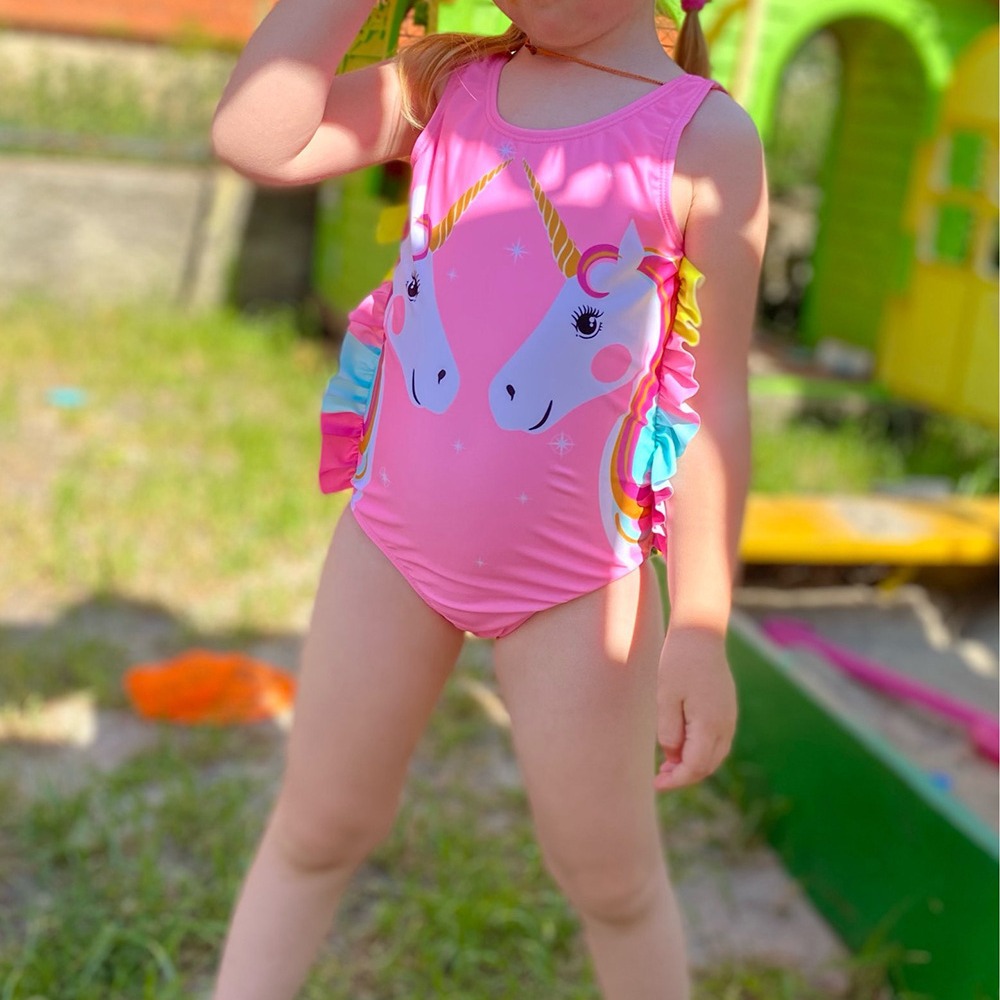 Новый трансграничный детский купальник для девочек, Цельный купальник с мультяшным единорогом, купальник для девочек с оборками 9069