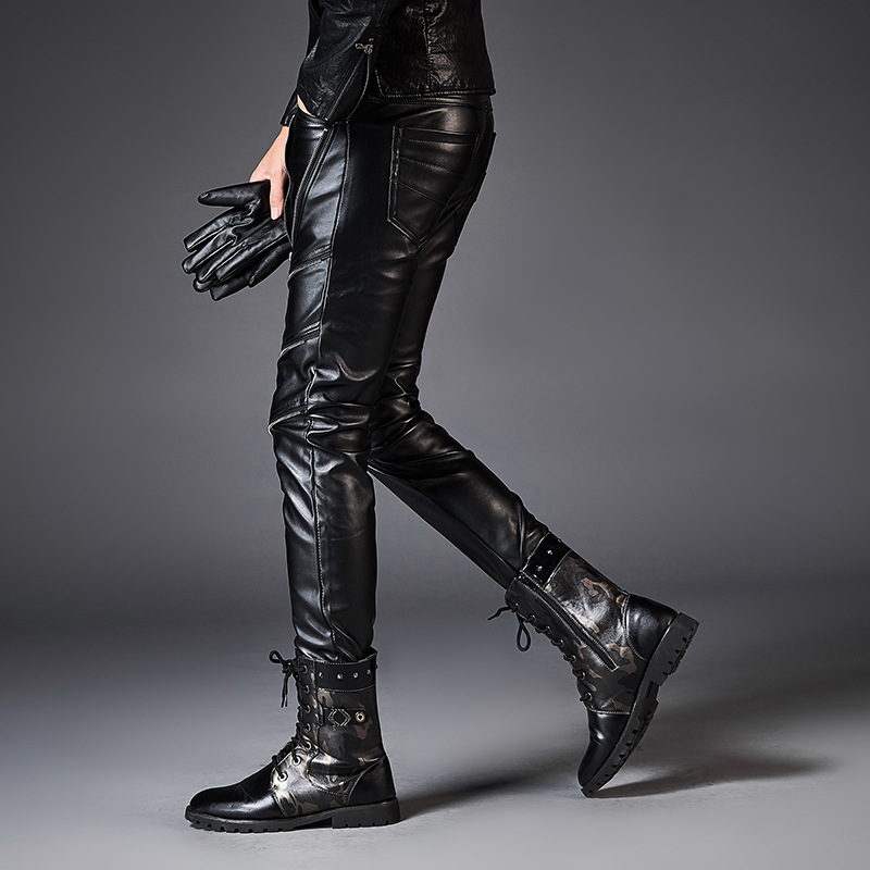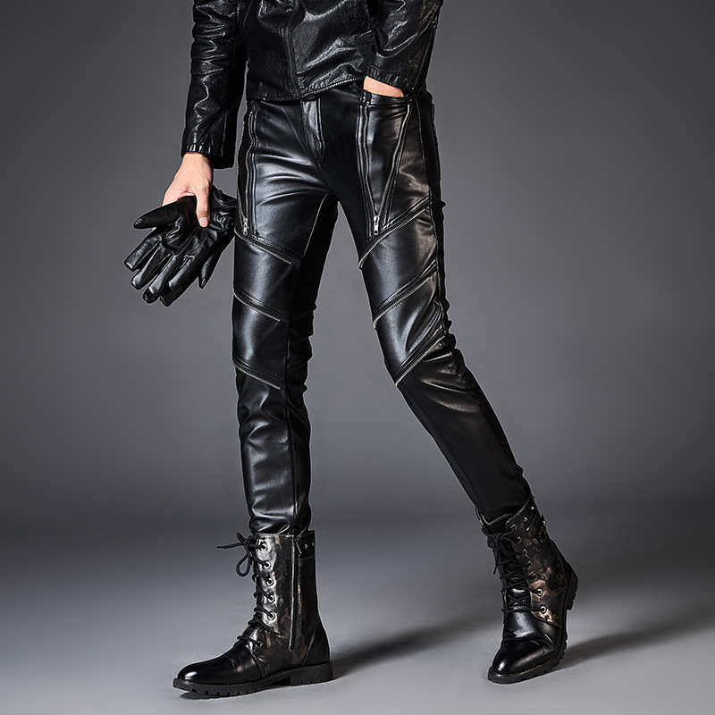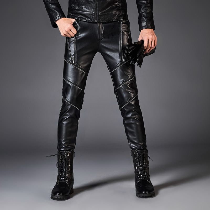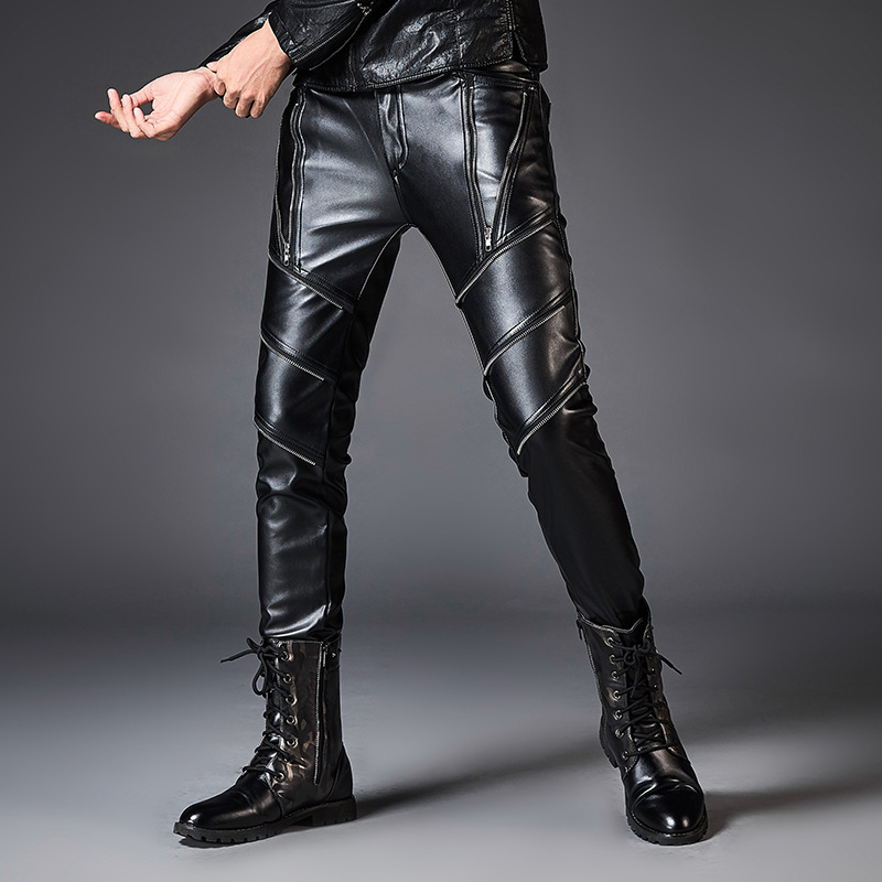 20 осень и зима Новый корейский стиль Модные мужские декоративные брюки из искусственной кожи на молнии Узкие кожаные брюки больших размеров модные персонализированные мотоциклетные брюки