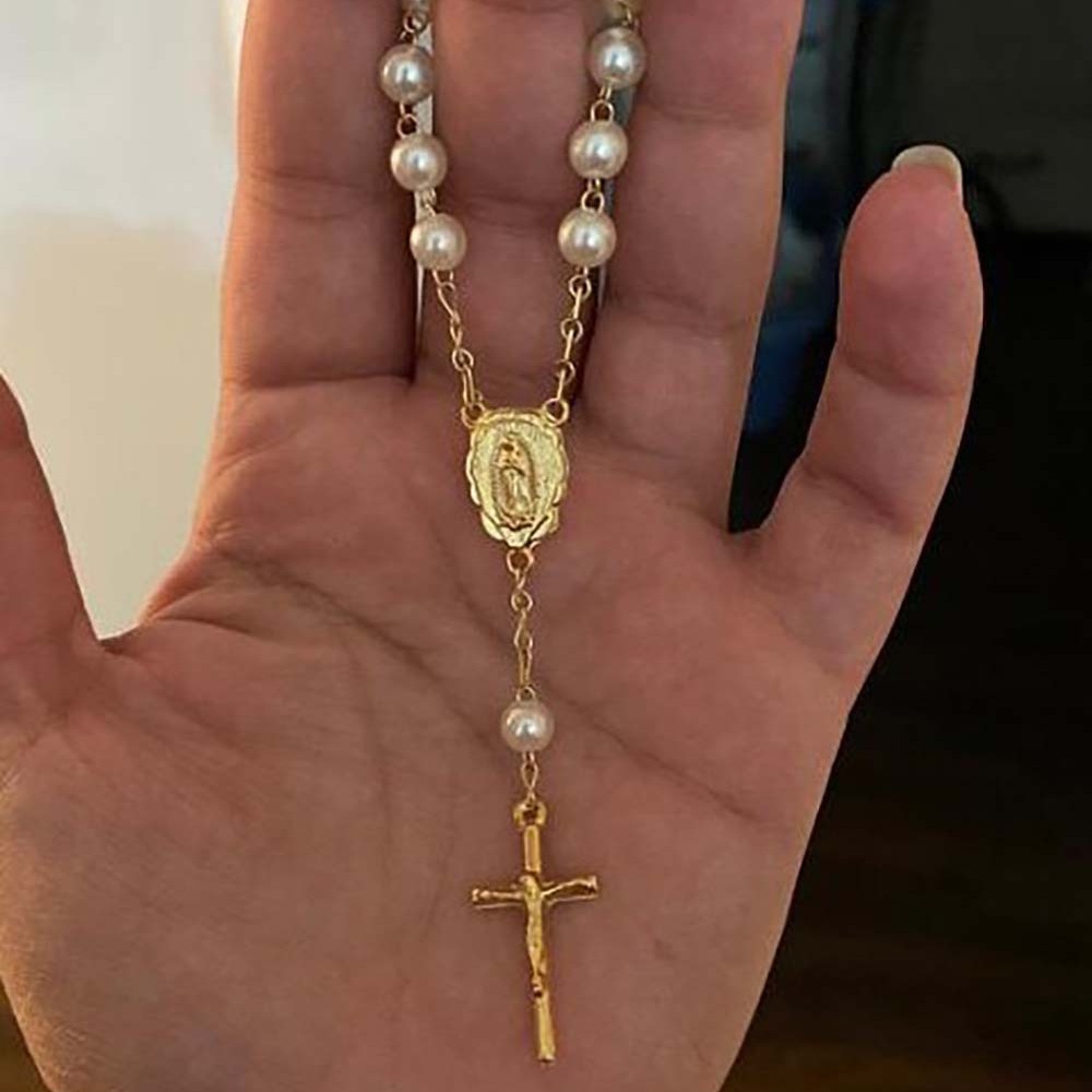 Etsy热销 婴儿玻璃珍珠洗礼圣餐礼物天主教 十字架手指链迷你念珠