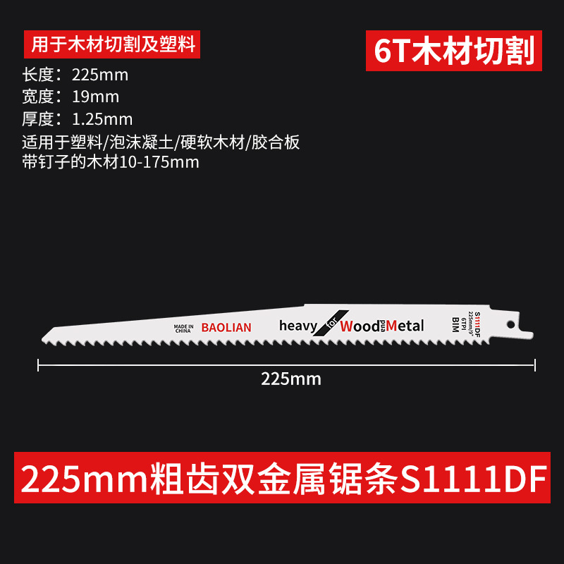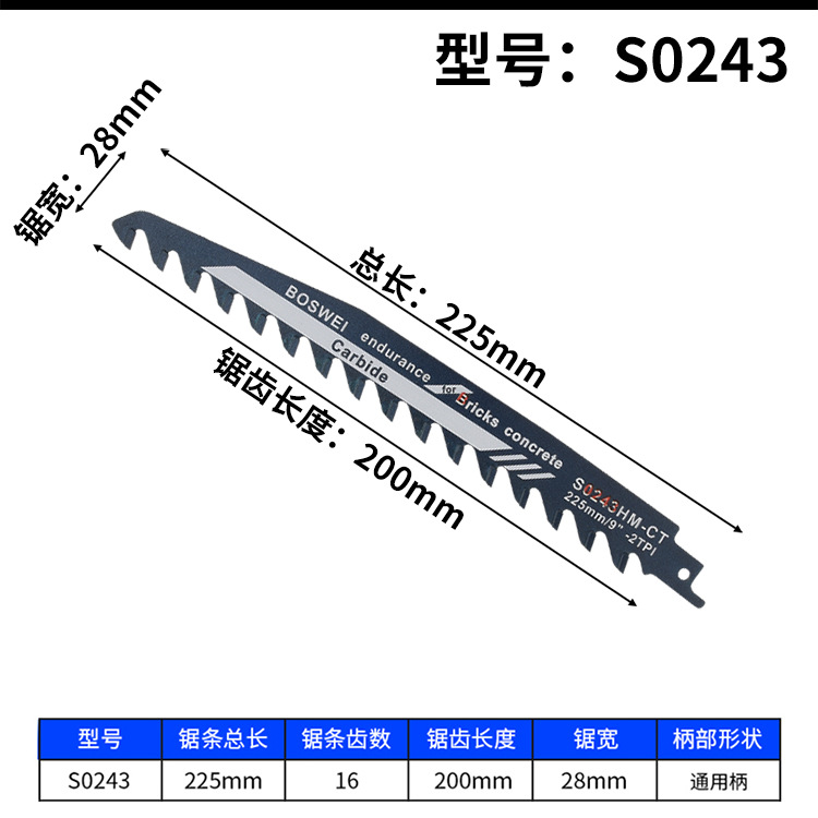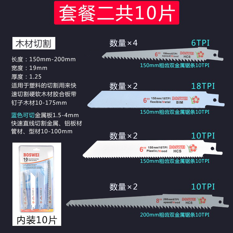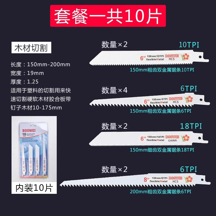 150 мм тонкий металлический зуб S922BF; 150 мм тонкий металлический зуб S922EF; 200 мм Тонкий зуб металлический S1025VF; 225 мм Тонкий зуб металлический S1122BF; 225 мм Тонкий зуб металлический S1122EF; 300 мм тонкий металлический зуб S1222EF; 150 мм грубый зуб Дерево S644D; 225 мм грубый зуб Дерево S1111DF; 240 мм грубый зуб Дерево S1531L; Грубый зуб 300 мм Дерево S1411DF; 225 мм S0243HM Для зубчатого кирпича из сплава; 300 мм сплав зуб кирпич S1243HM; 455 мм сплав зуб кирпич S2243HM; (High-end) Упаковка, всего 10 штук; (Промышленный) Пакет 2 Всего 10 штук