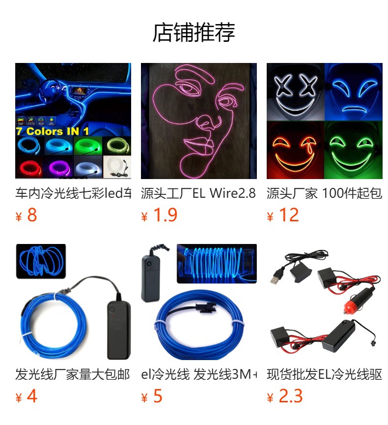 EL冷光线的核心是一条铜线,铜线被一层绝缘层和荧光层覆盖,荧光层被外面一层透明层所覆盖,这几层覆盖层组成了冷光线基本的结构。