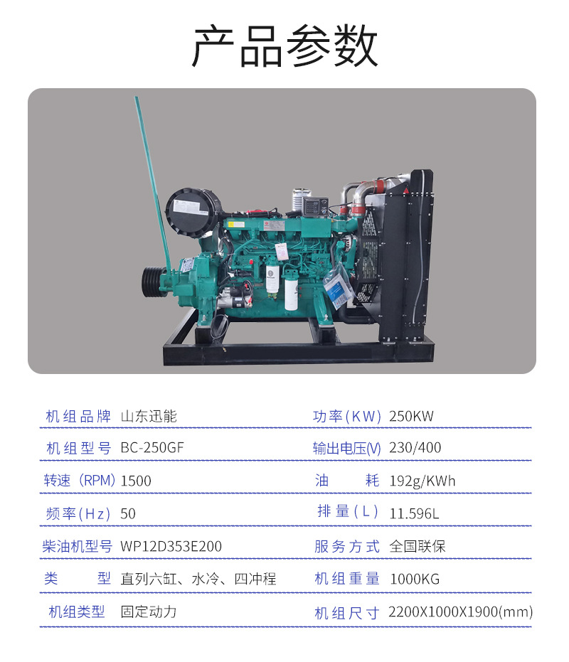 Надежная работа, длительный срок службы, низкий расход топлива, низкий уровень шума, высокая выходная мощность, энергосбережение, экологичность и т. д.