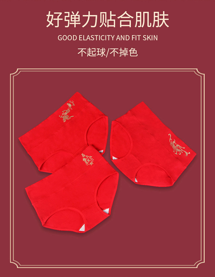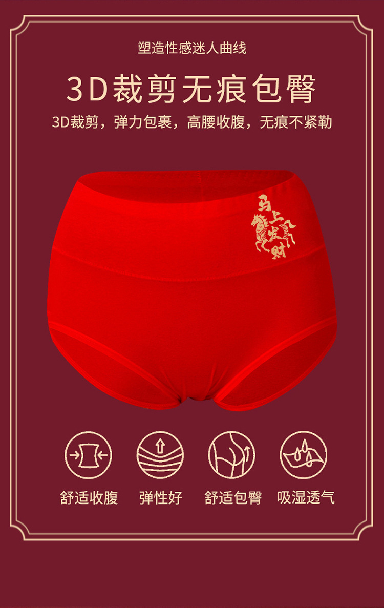 Год рождения Дракона, праздничное хлопковое нижнее белье больших размеров, женское свадебное белье с высокой талией и животом, большие красные брюки для девочек оптом