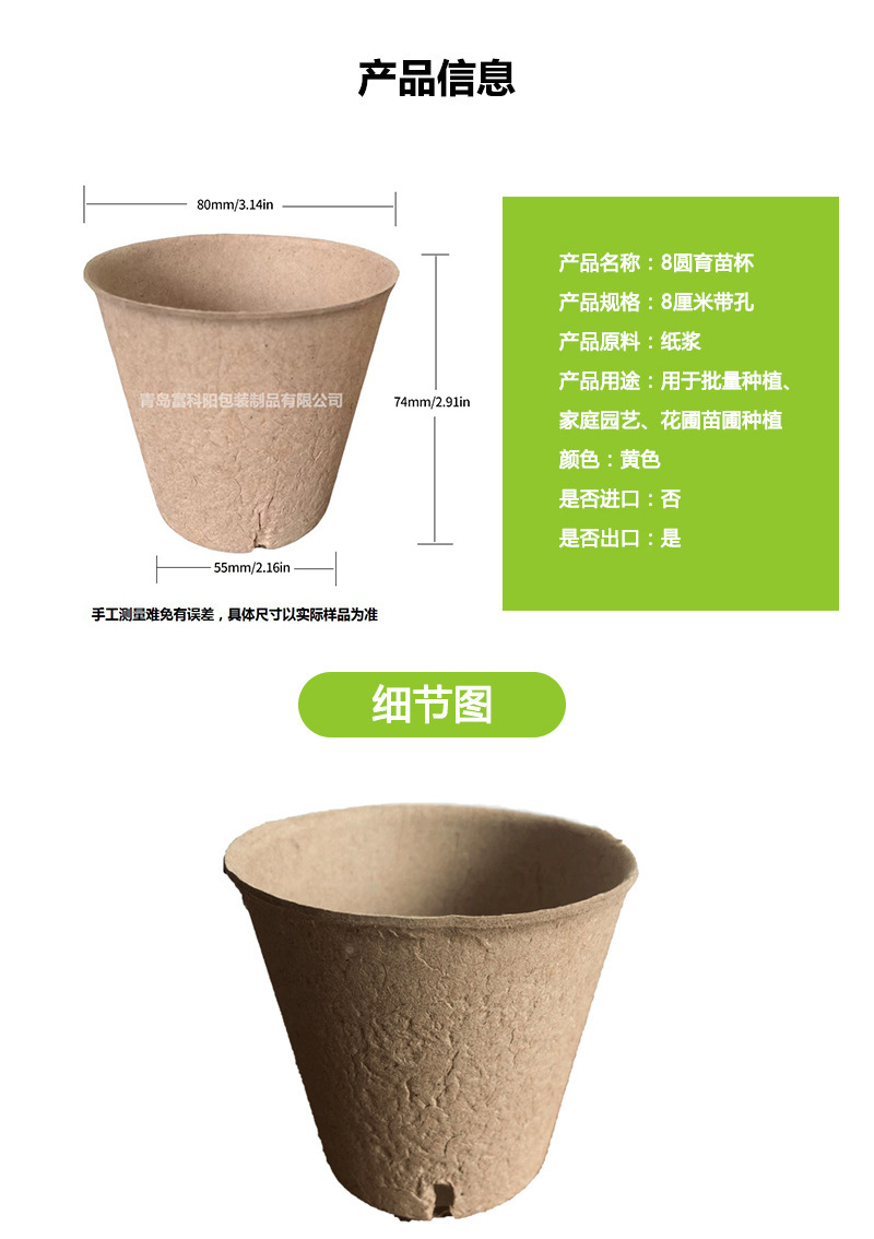 Одноразовые чашки для рассады целлюлозы Питание 8 см Круглые 4 отверстия Семена прорастают и утолщают Садоводство Выращивание Бумажные чашки