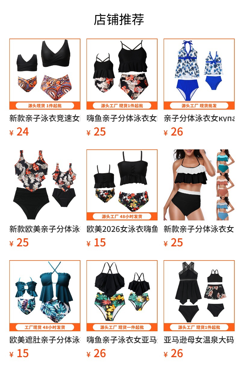 Европейские и американские женские купальники 2026 года, семейные купальники-танкини в стиле Hi-Yu, консервативный комплект бикини для совместного плавания родителей и детей.