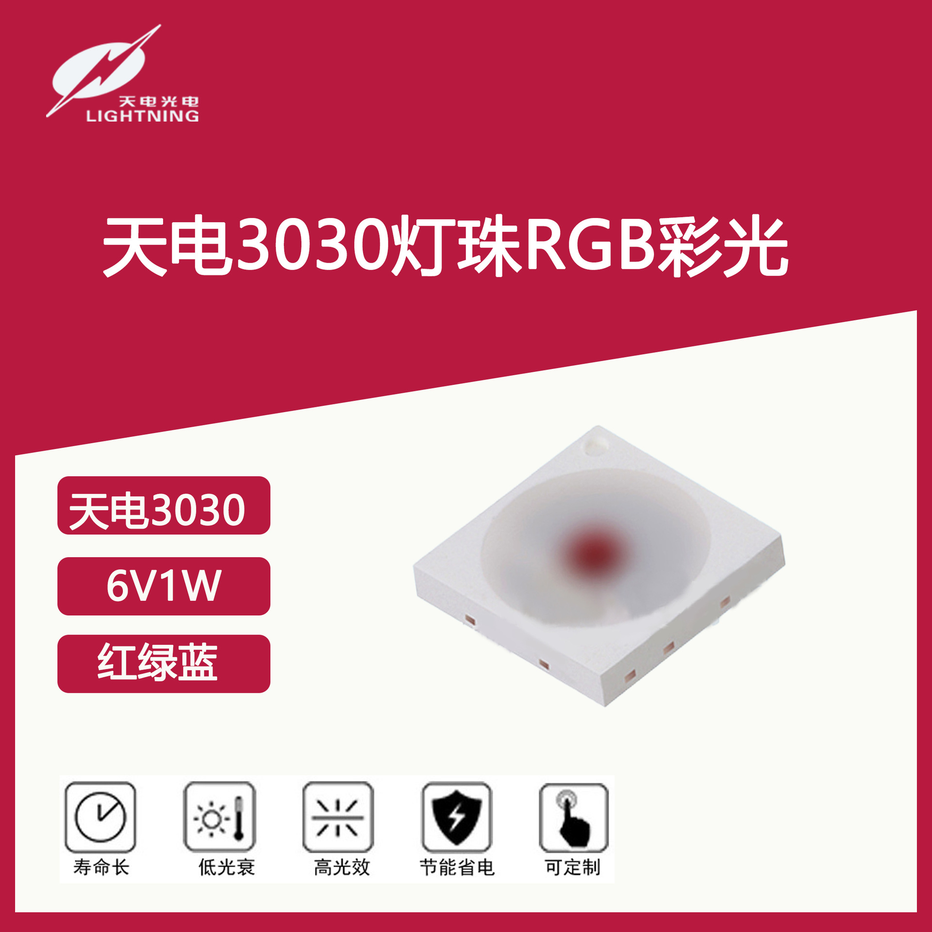 天电总代理3030灯珠rgb彩光6V1W红光绿光蓝光