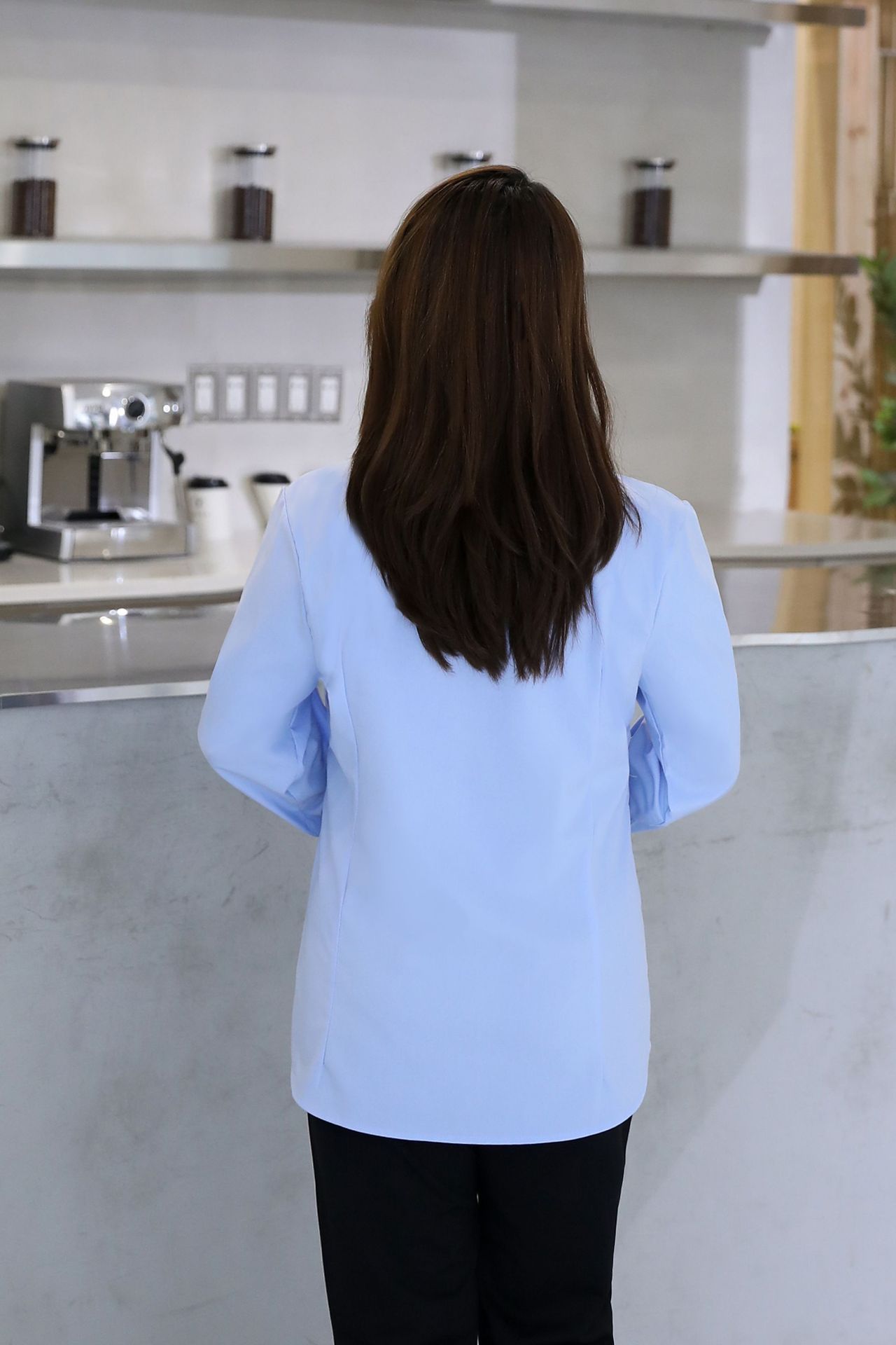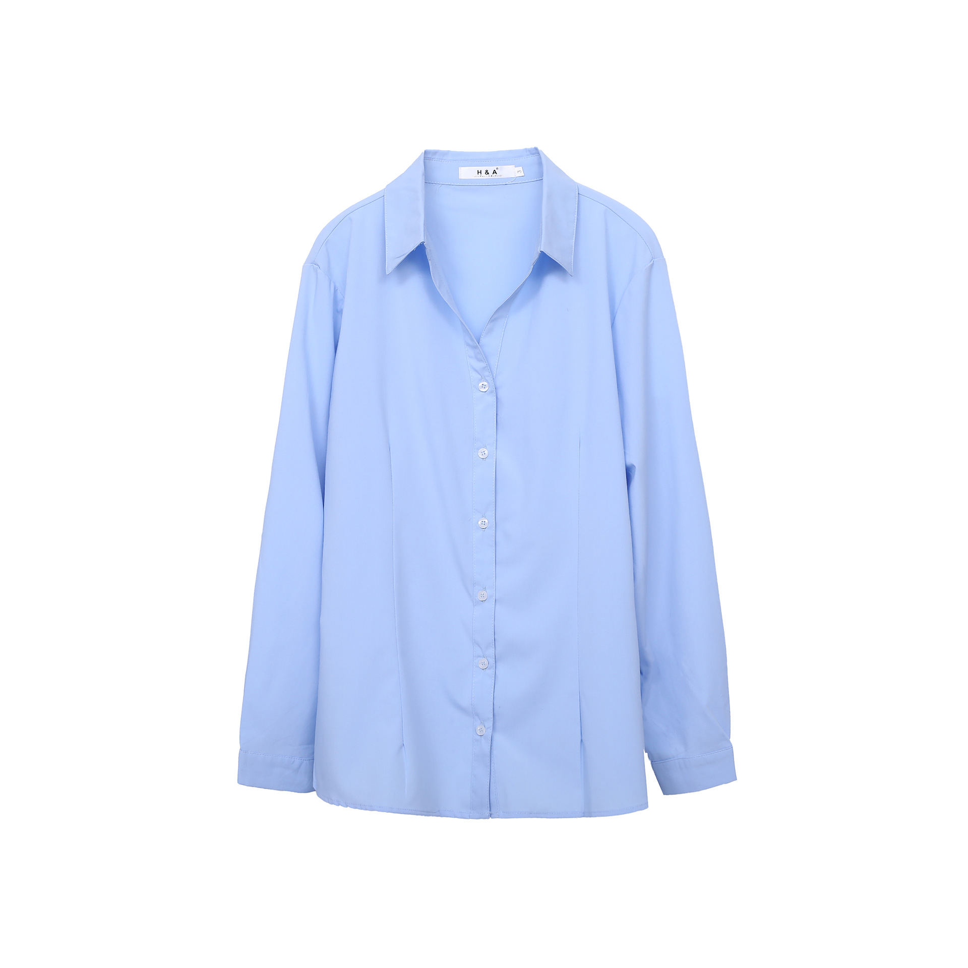 本款衬衣面料白色主要成分为再生聚酯纤维 面料有弹力 垂感好 面料做了加密 白色的也不透 怕透的MM 可以放心穿, 蓝色是弹力棉的 有弹力 穿着舒适 !