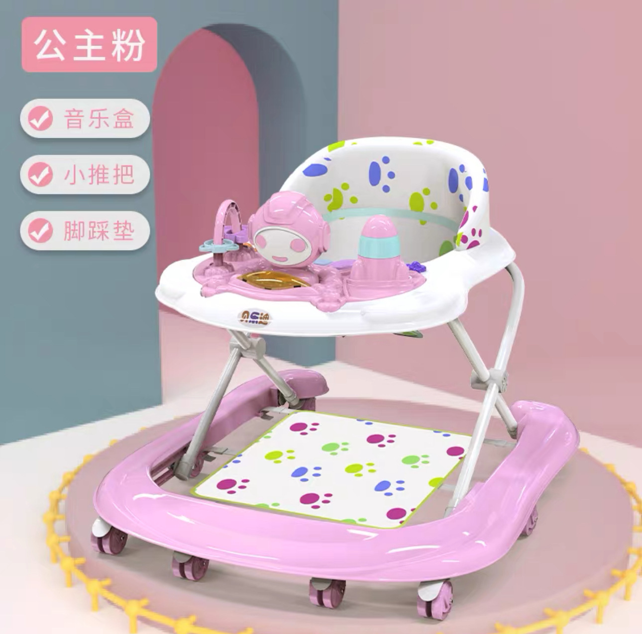 Детская ходунка многофункциональная анти-опрокидывание высота регулировка нескользящей складной ремень музыкальная игрушка Раннее обучение ходунка