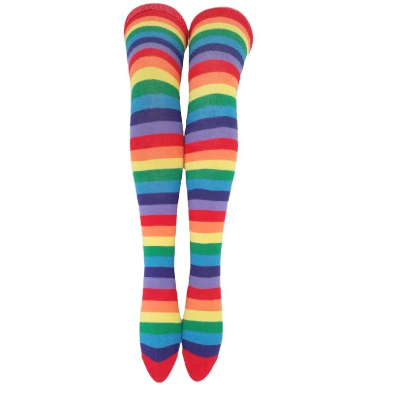 Осенне-зимние радужные носки выше колена, красочные длинные хлопковые носки, модные короткие юбки, коллокационные чулки