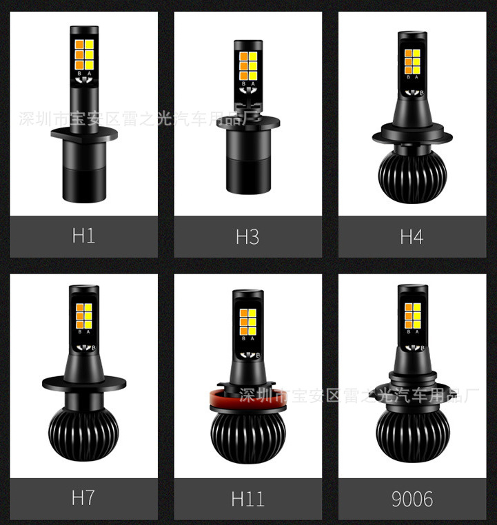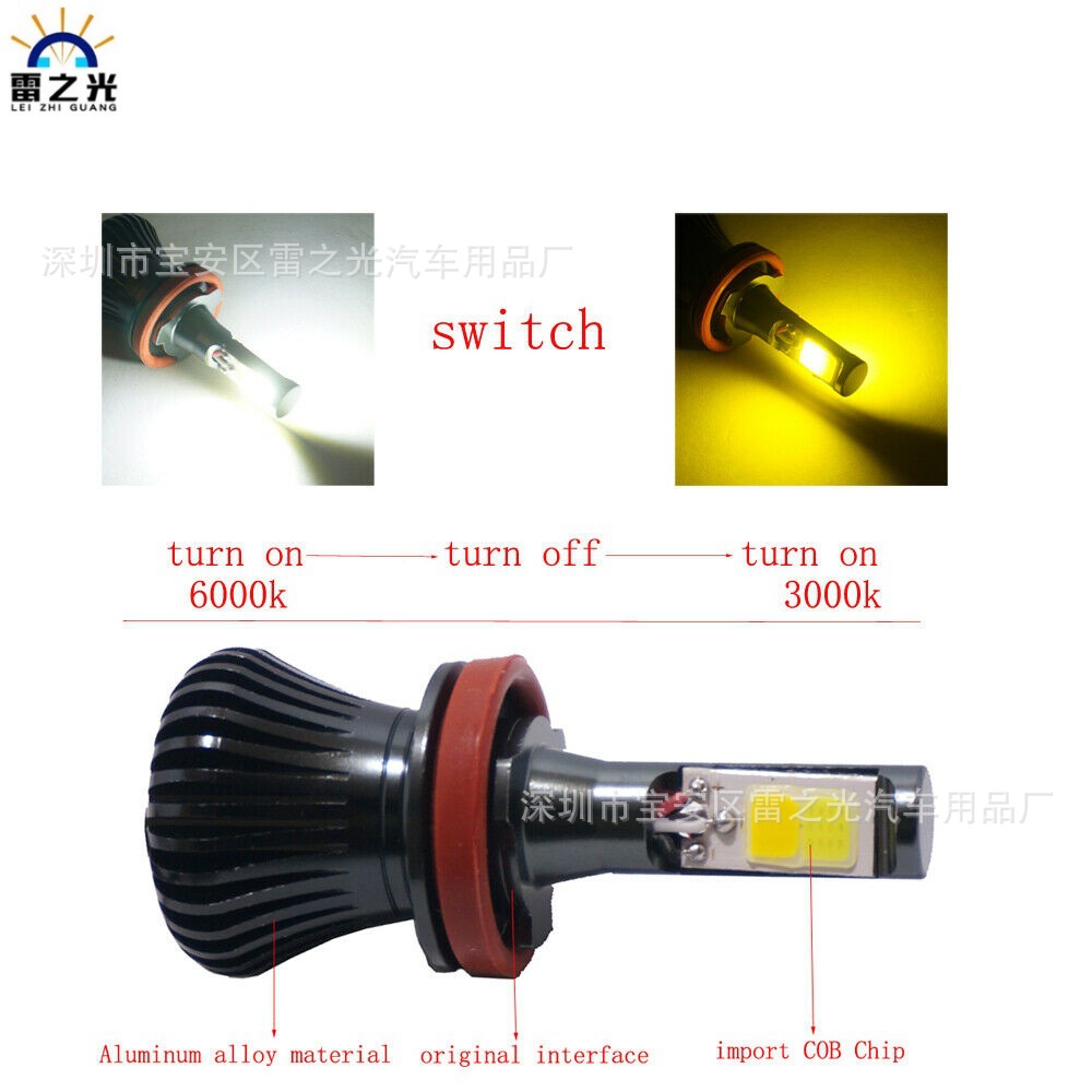 Прямые продажи с фабрики, автомобильные светодиодные передние противотуманные фары с высокой яркостью дальнего и ближнего желтого и белого света, двухцветные светодиодные модифицированные фары h3 H11 H4