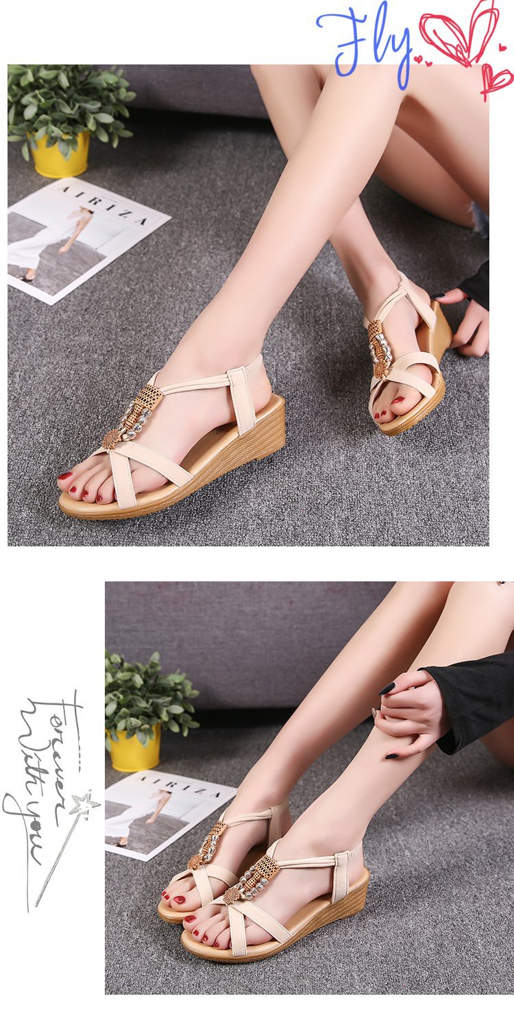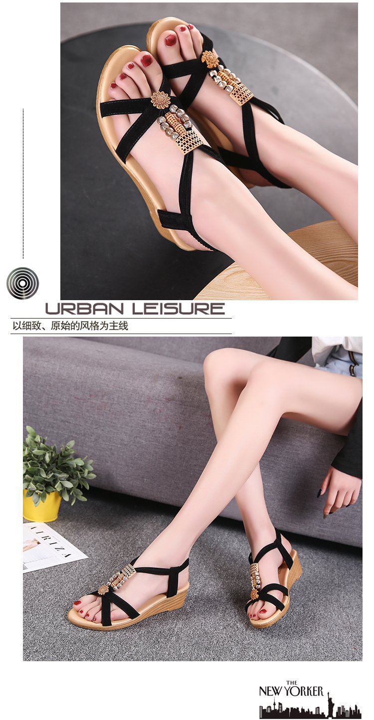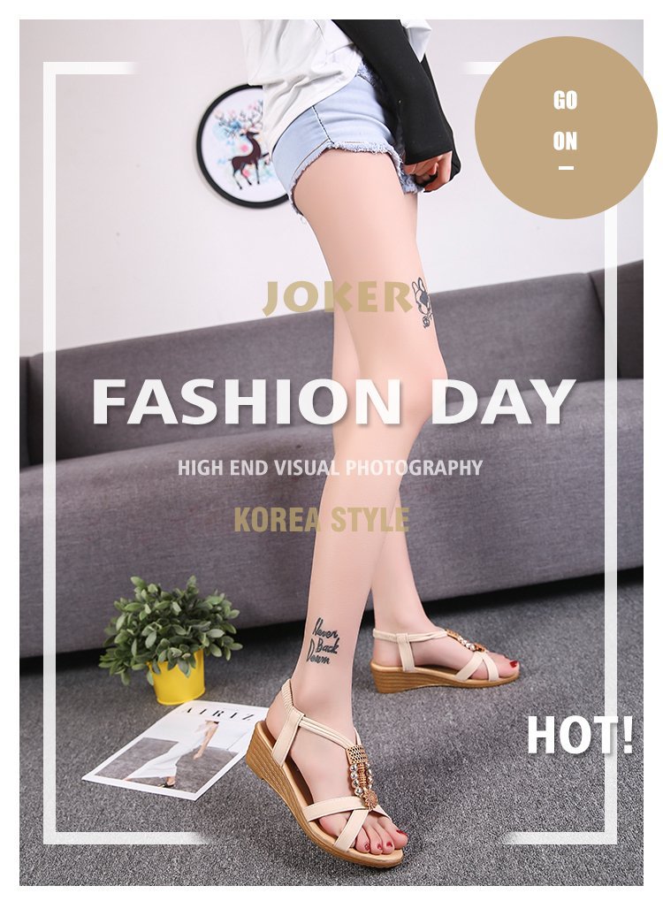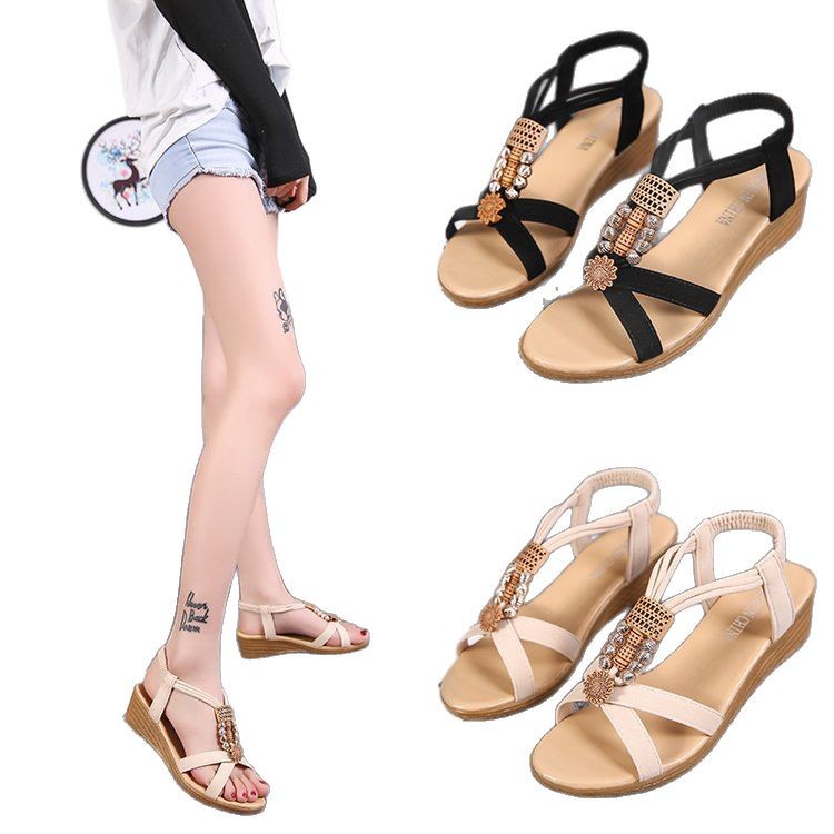Сандалии женские 2023 летние новые корейские стильные женские сандалии с открытым носком из бисера богемный Клин Fish Peep Внешняя торговля повседневные