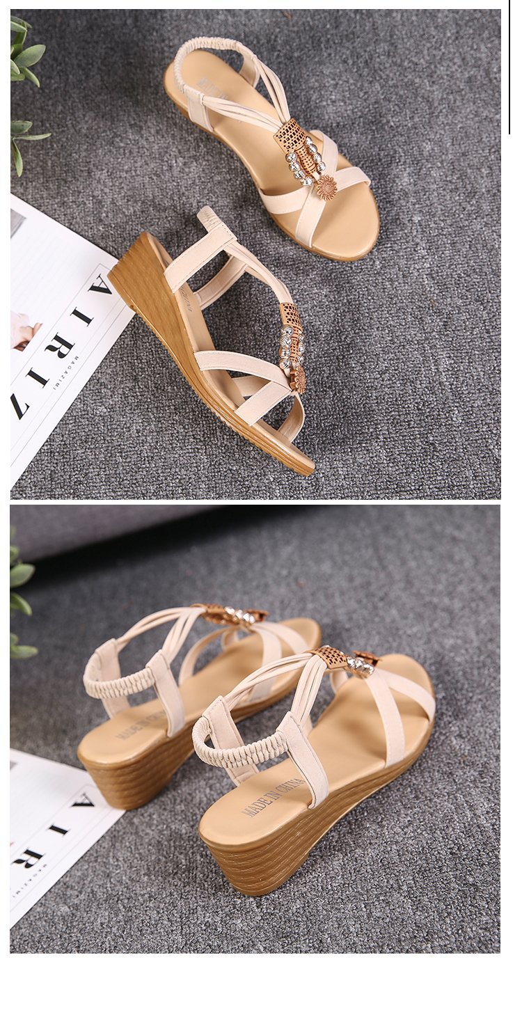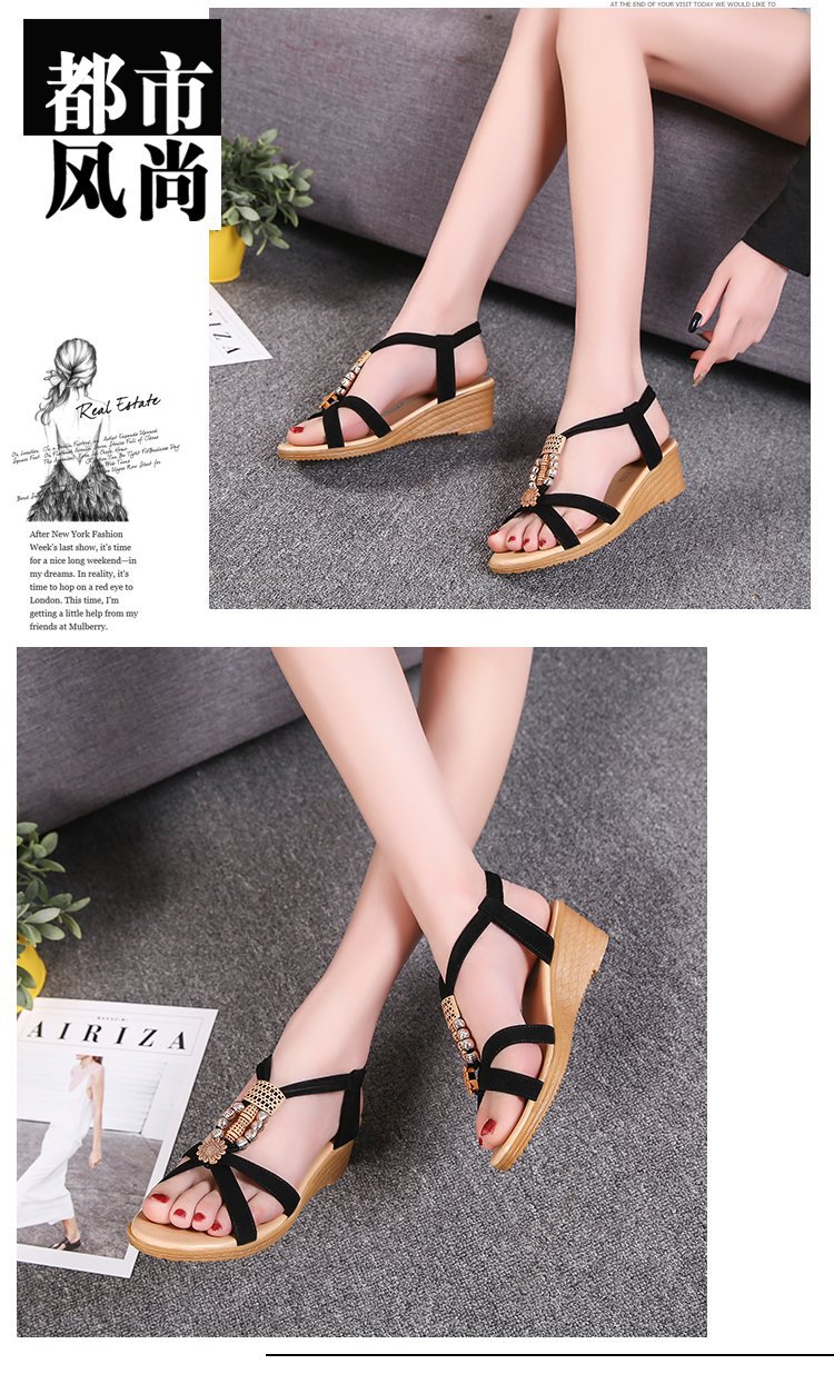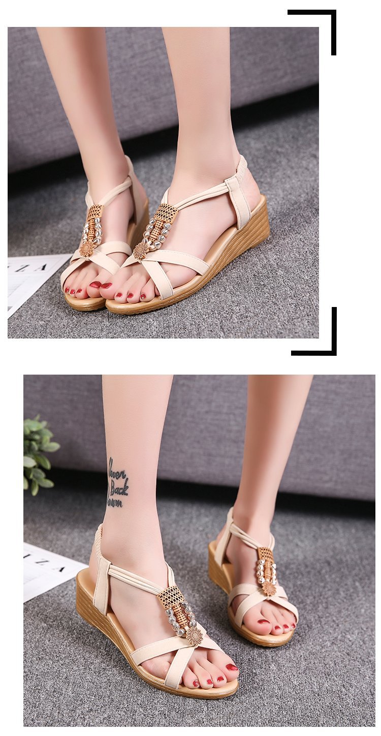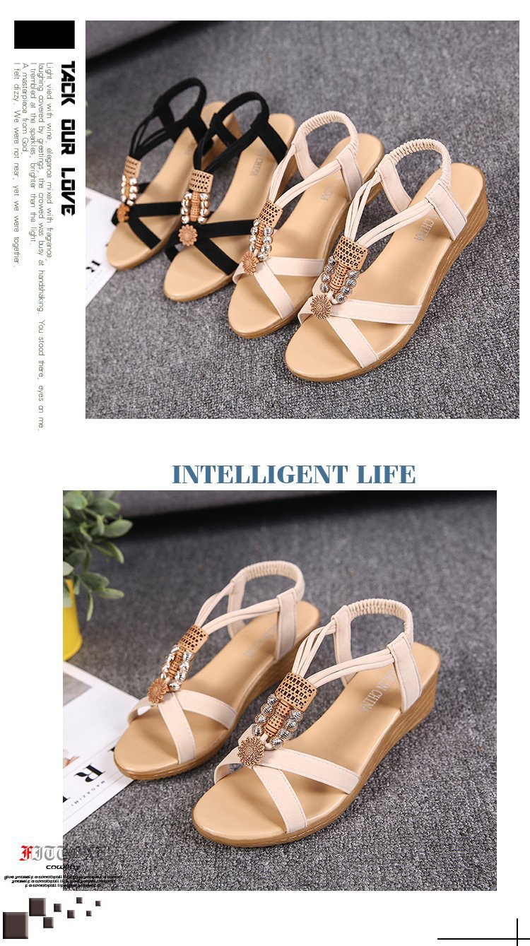 Сандалии женские 2023 летние новые корейские стильные женские сандалии с открытым носком из бисера богемный Клин Fish Peep Внешняя торговля повседневные