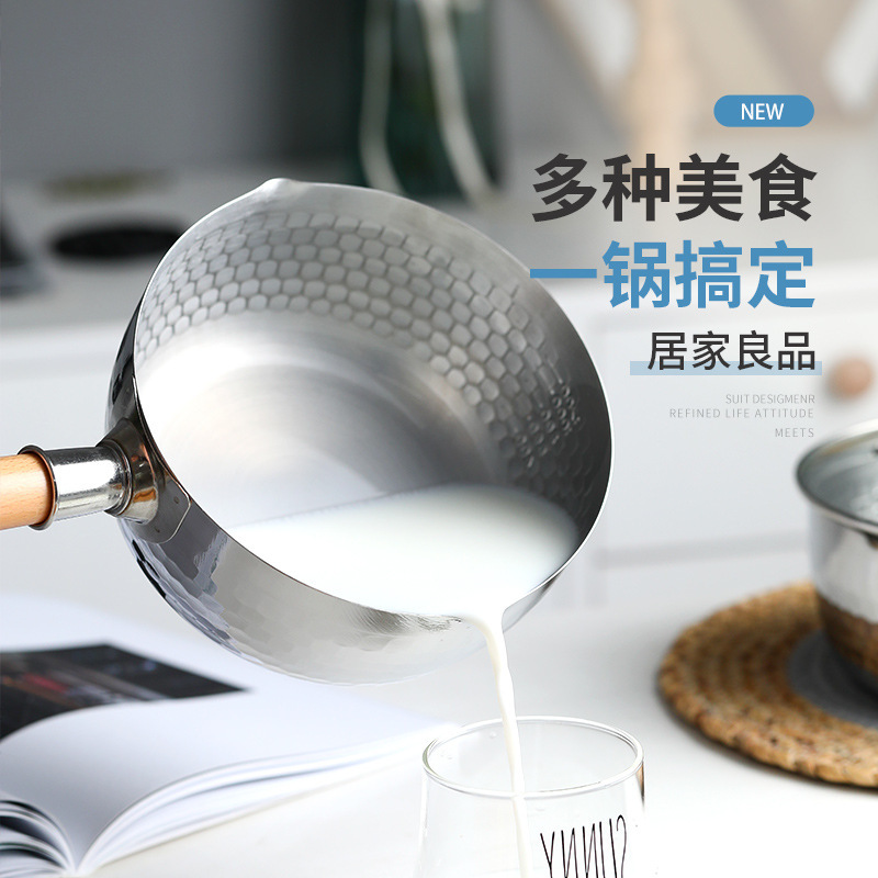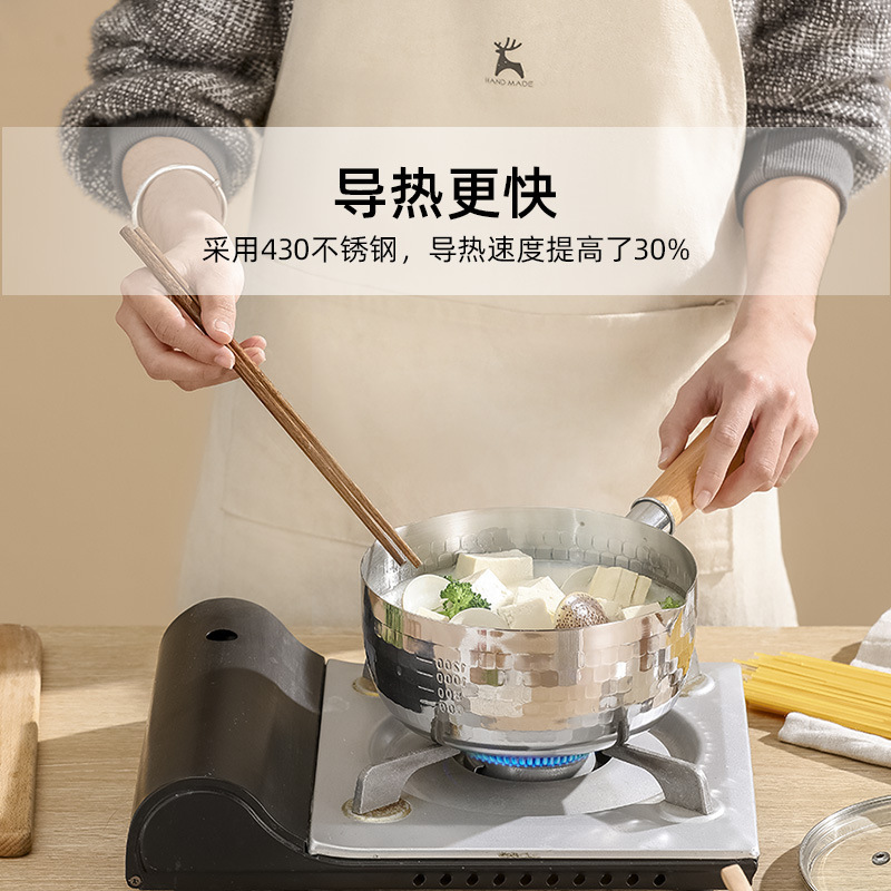 Кастрюля Yukihira из нержавеющей стали 430/304, утолщенная, с плоским дном, антипригарная, с одной ручкой, для приготовления молока, подходит для индукционных плит, утолщенная и долговечная.