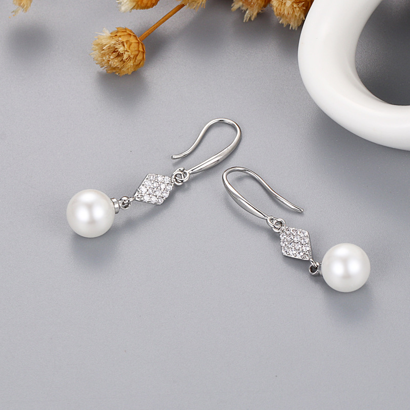 耳钩长约15mm, 菱形长约12.8*宽约5.6mm,空托合适珍珠8-9m |