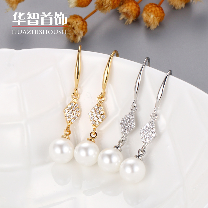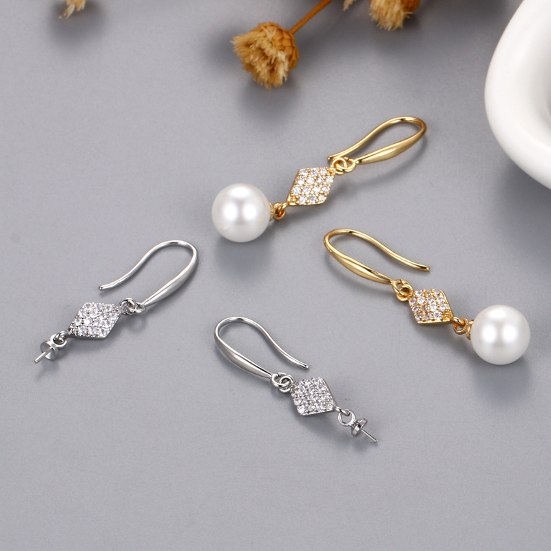 Японский и корейский бисер Циркон Популярные ушной крючок Алмазные жемчужные серьги Модные простые серьги Пустой держатель Готовая оптовая продажа