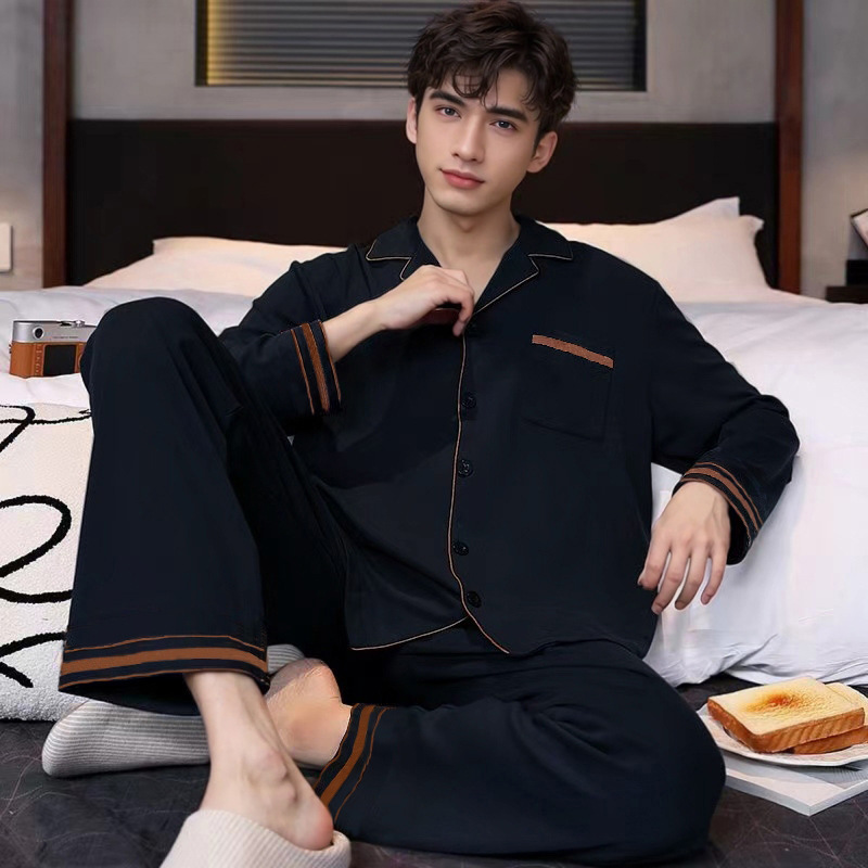 Пижама мужская весна и осень хлопок с длинными рукавами тонкий хлопок большой размер осенний и зимний набор домашней одежды мужской зимний