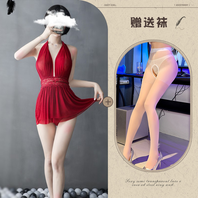 Аромат ночного прослушивания, Европейская и американская Женская Сексуальная двухслойная сетчатая прозрачная соблазнительная ночная рубашка с глубоким V-образным вырезом, домашняя одежда 995