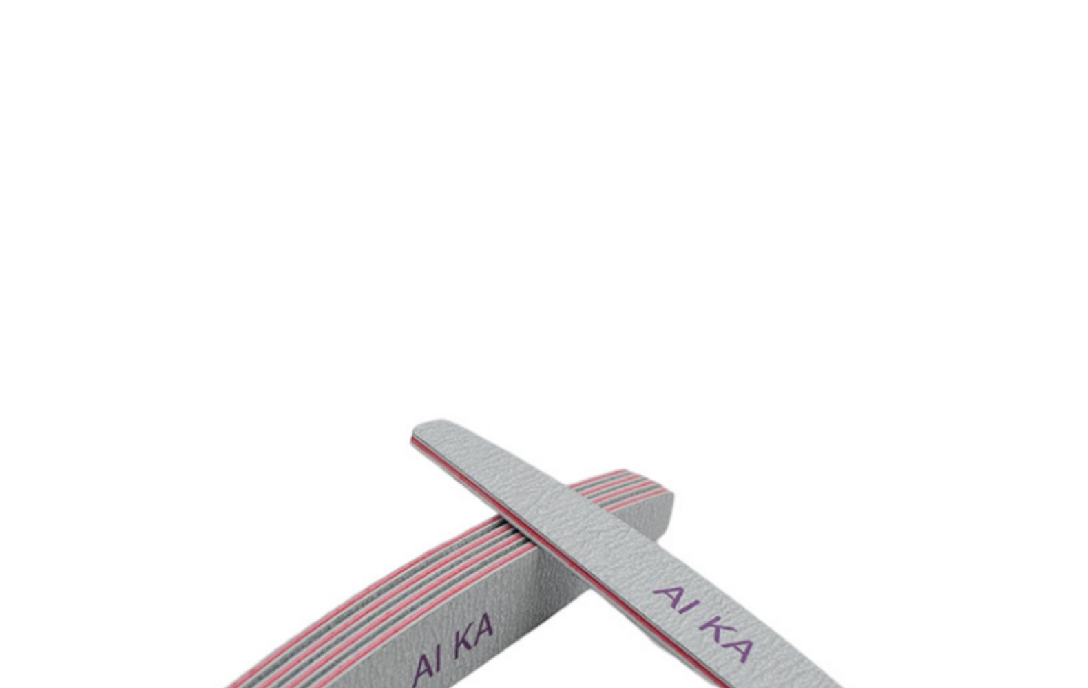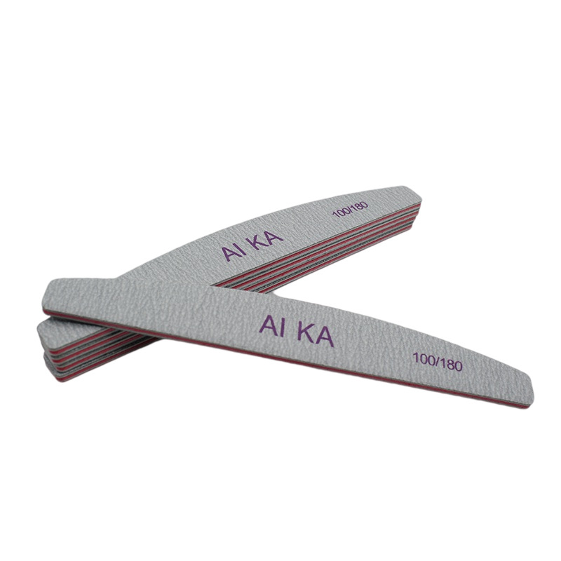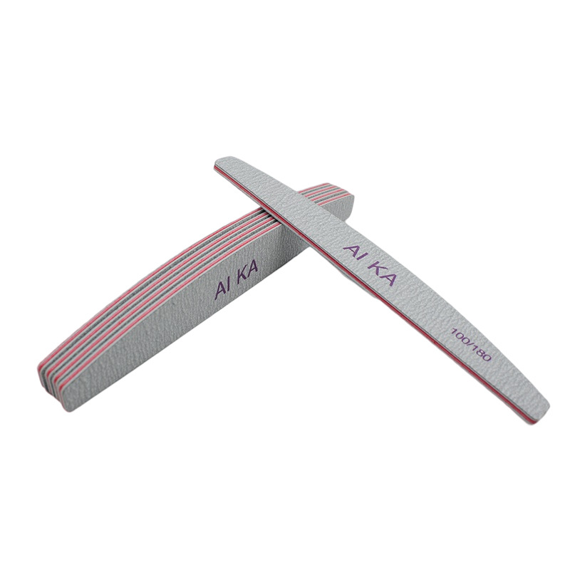 Популярный пилок-пилочка для ногтей полукруглой формы серого цвета для маникюра и ухода за ногтями.