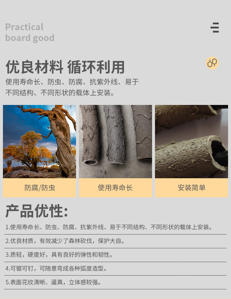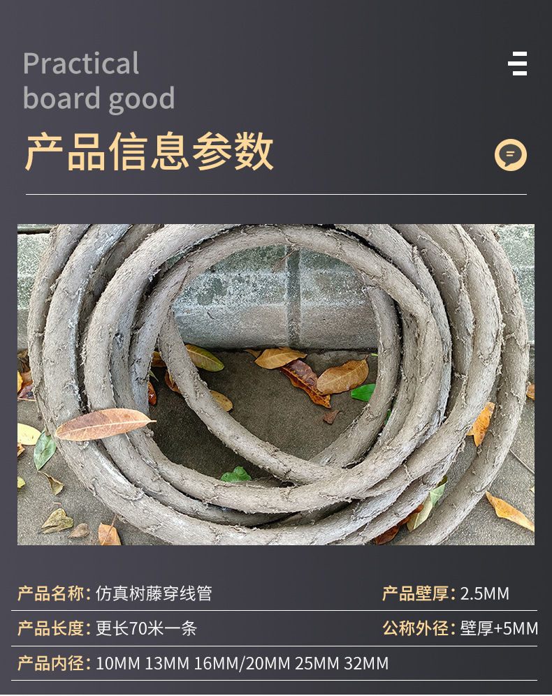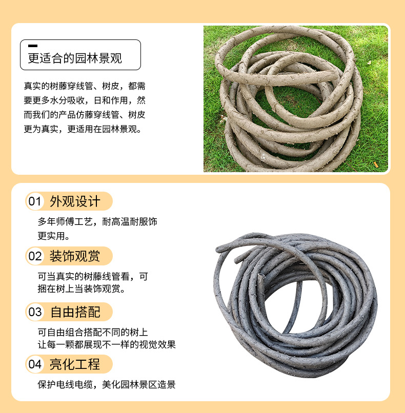 Полый шланг из ротанга из искусственного дерева наружный защитный кабель для нарезания резьбы трубы огнестойкий антивозрастной корпус