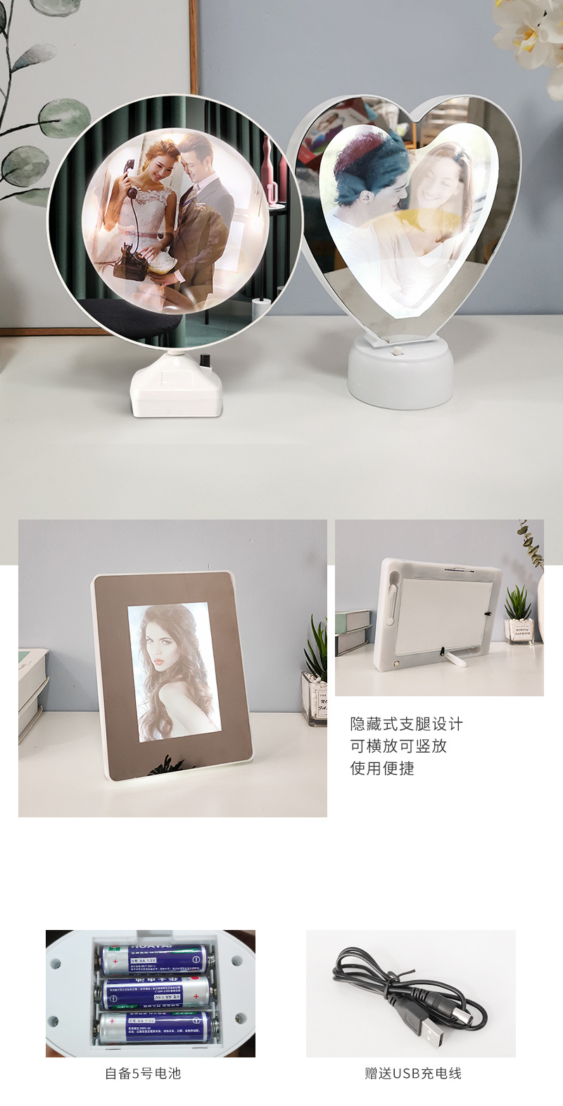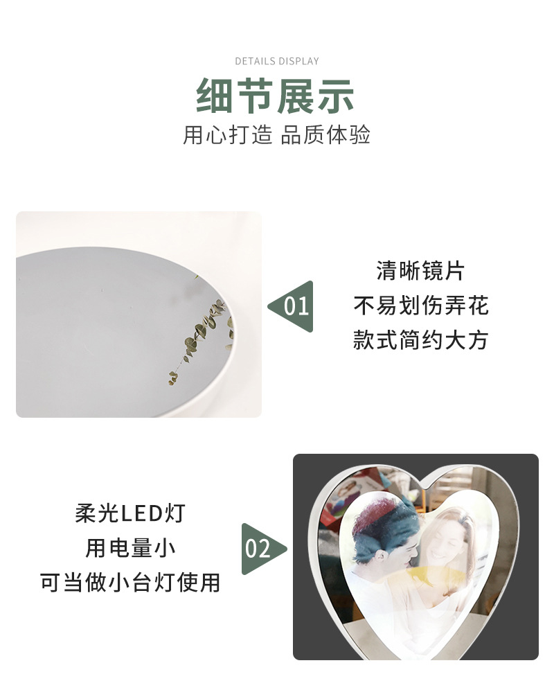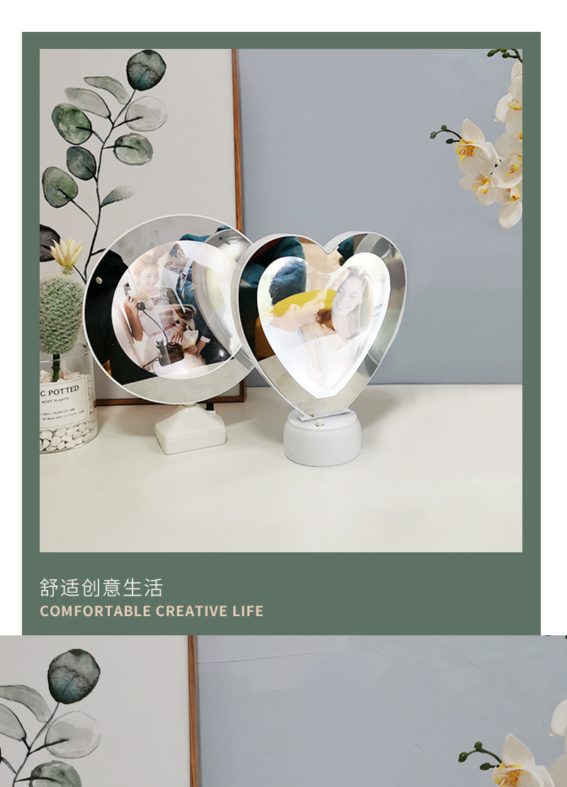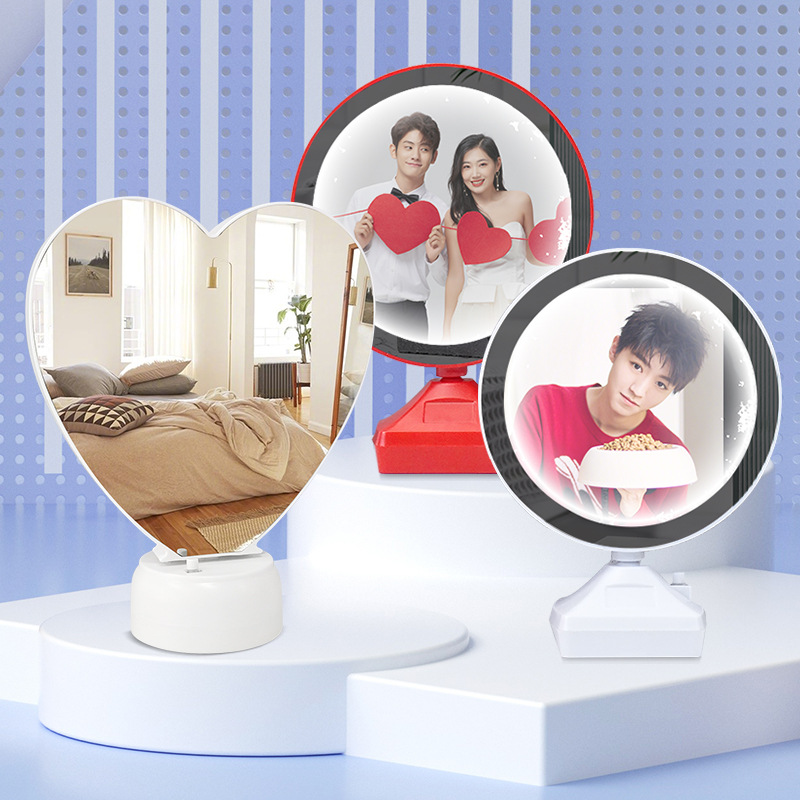 Простая настольная лампа фоторамка волшебное зеркало украшение светодиодное круглое в форме сердца волшебное зеркало фоторамка украшение креативное зеркало для макияжа Круглая Рамка