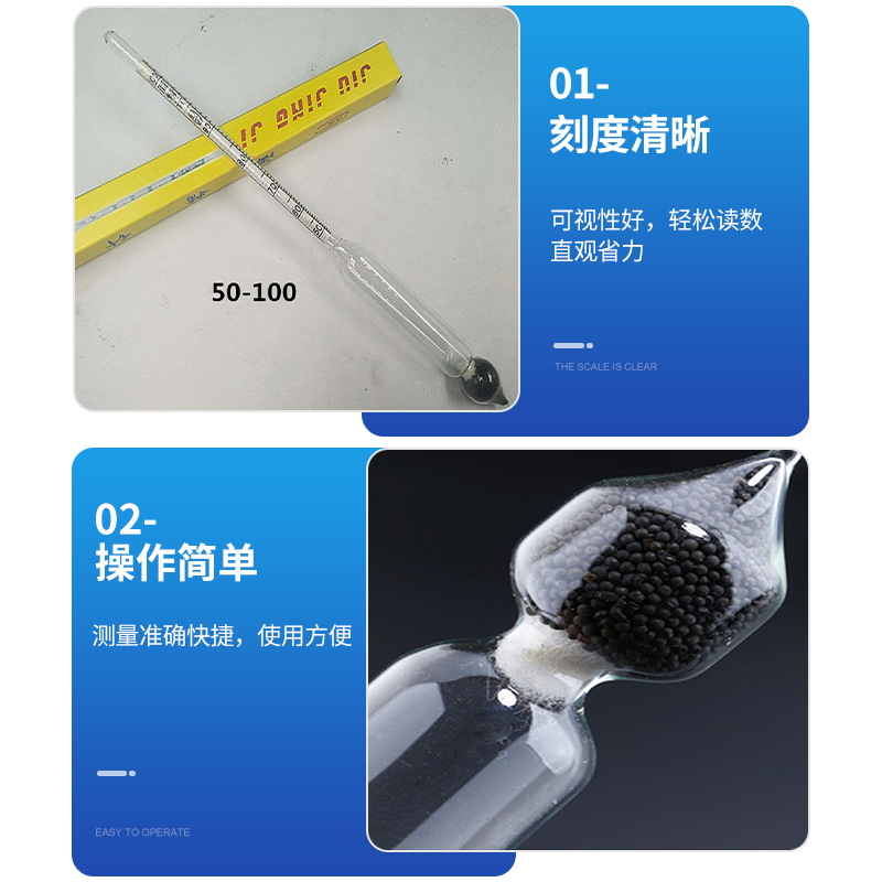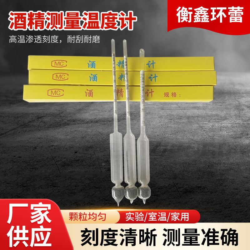 【测量原理】酒精度计的原理应该是根据密度计的原理设计的,我们知道乙醇的密度是小于水的,而相应的酒精(乙醇)度越大,那酒的密度也越小而浮力也越小。酒度计就是根据这种差异而算出乙醇的含量的。