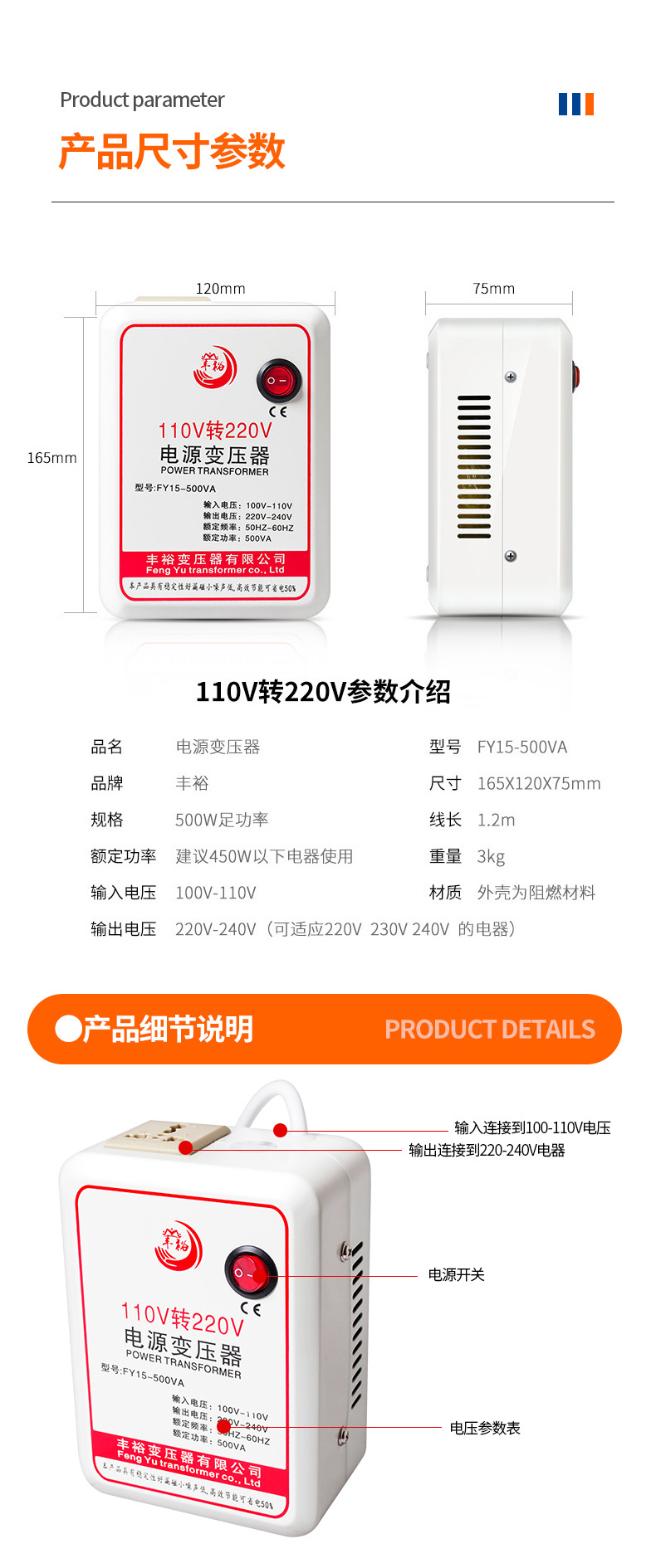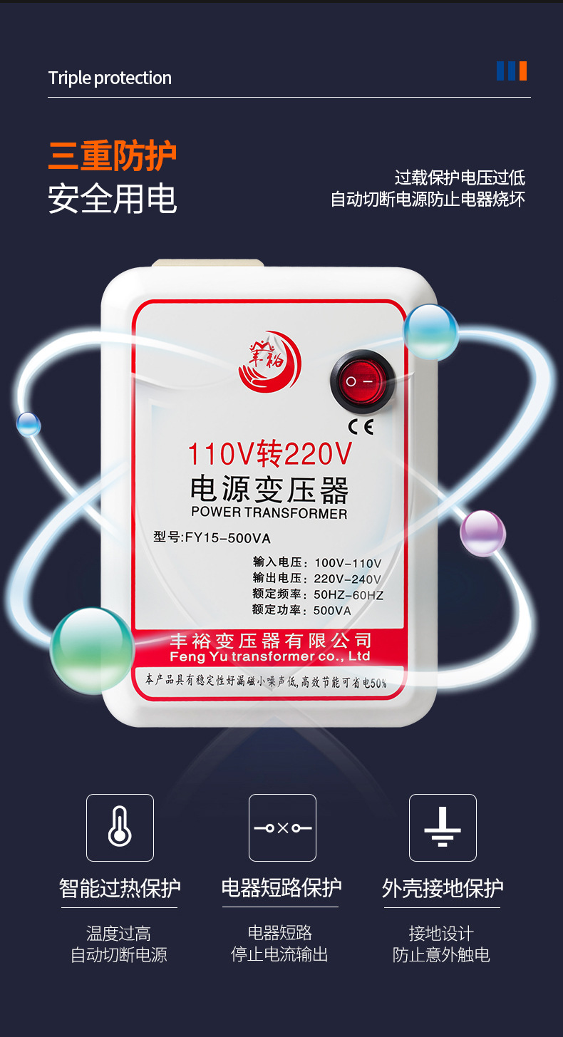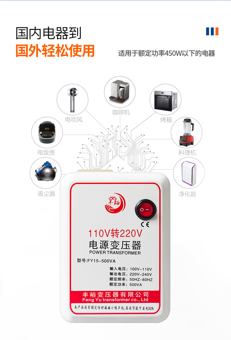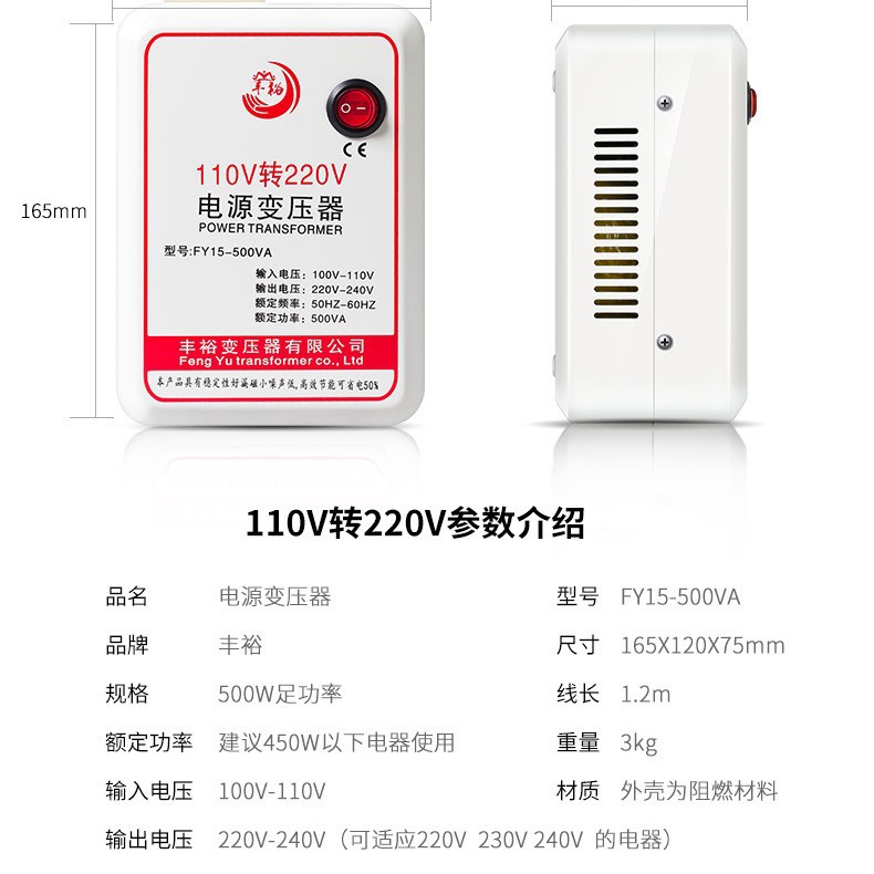 Трансформатор напряжения Fengyu 500 Вт, 110В в 220В, для использования в США и Японии, преобразователь напряжения для бытовой техники, энергосберегающий