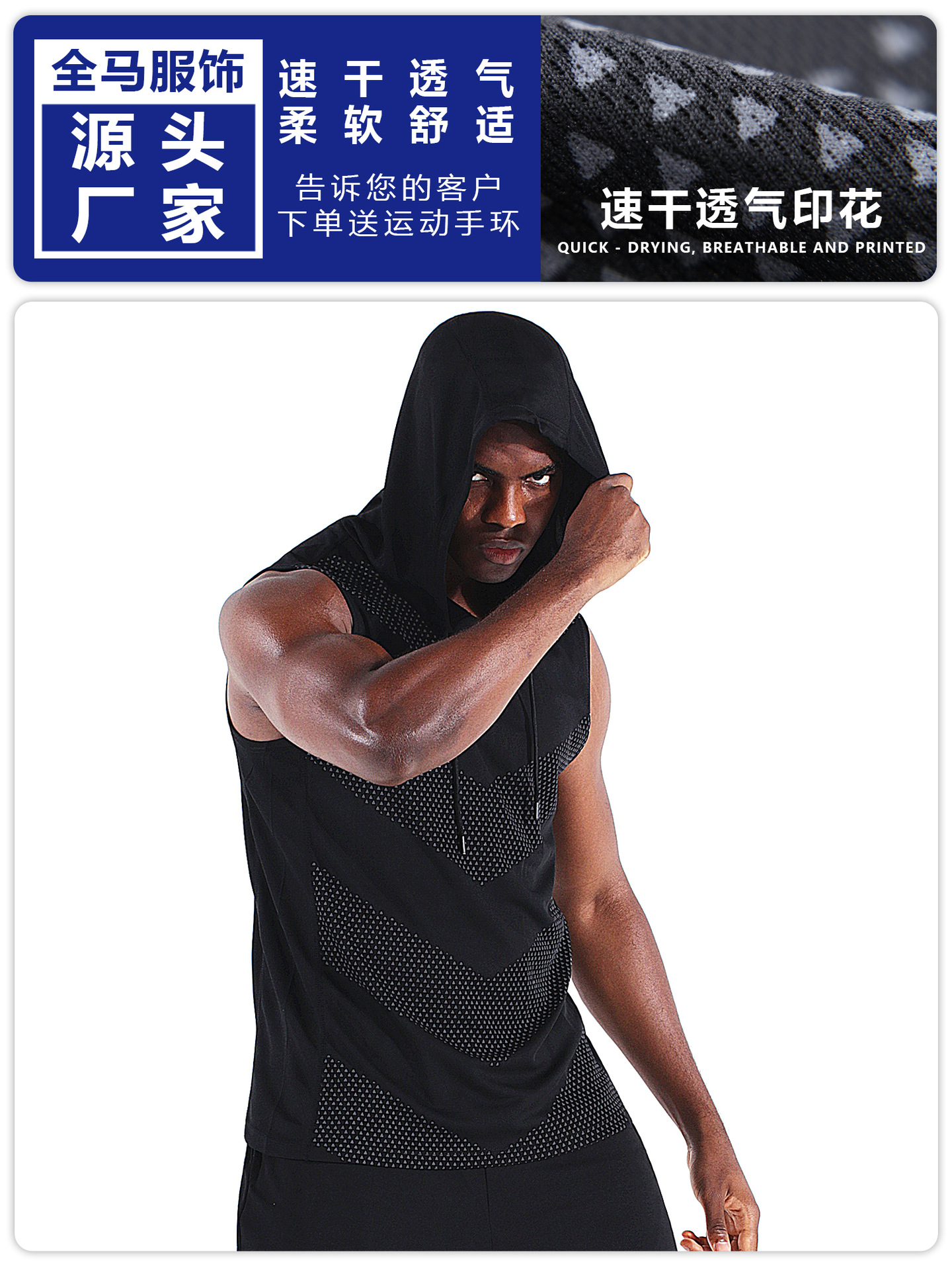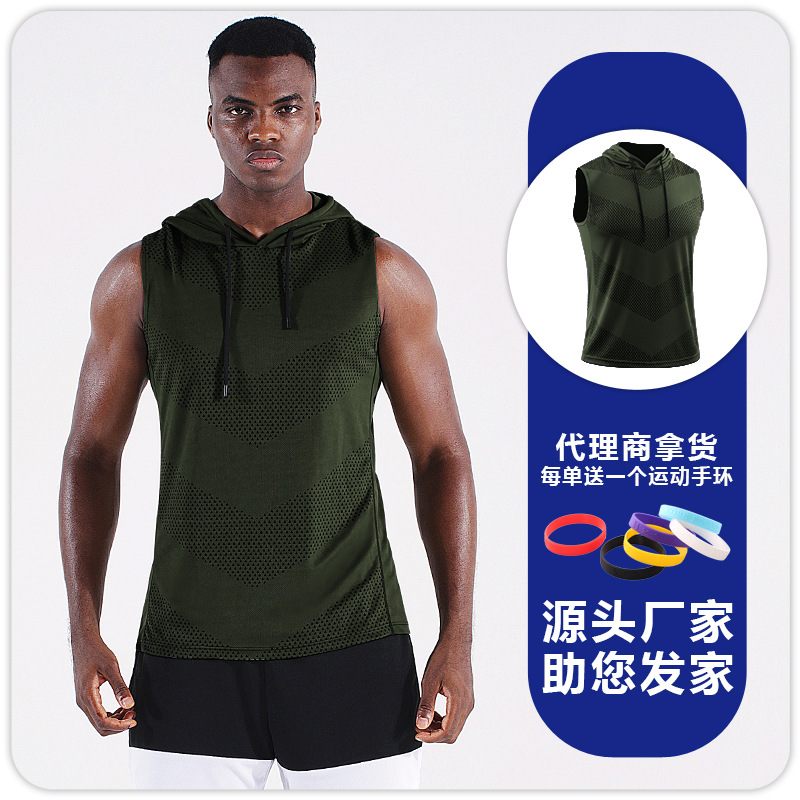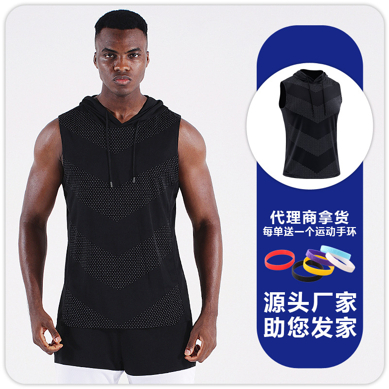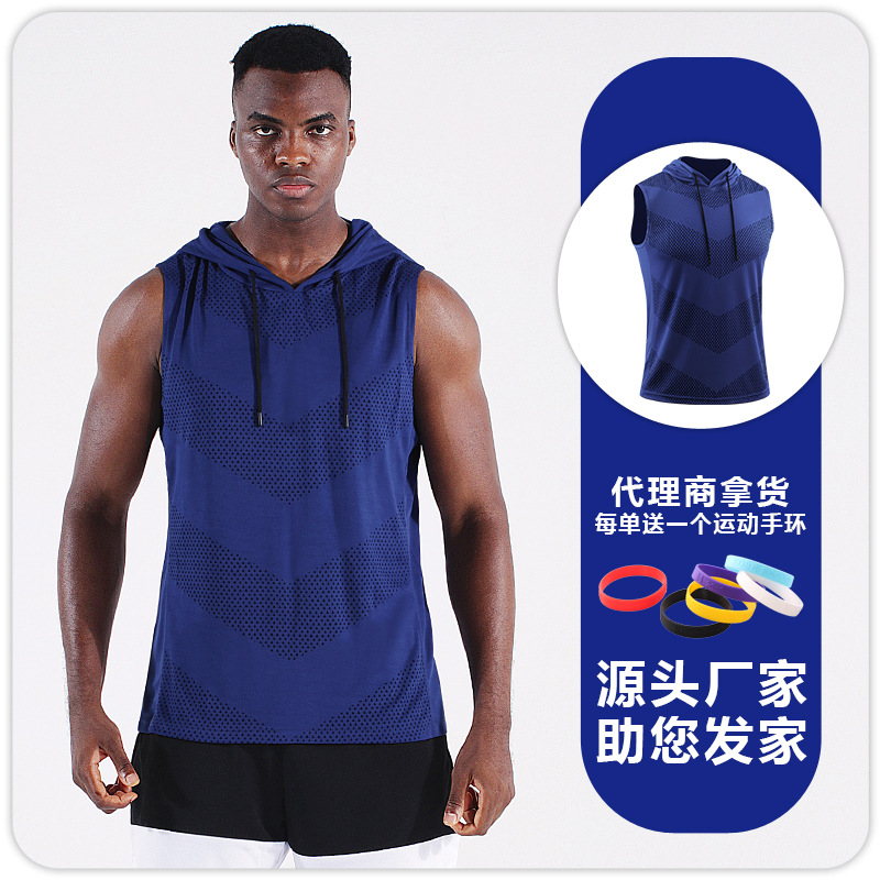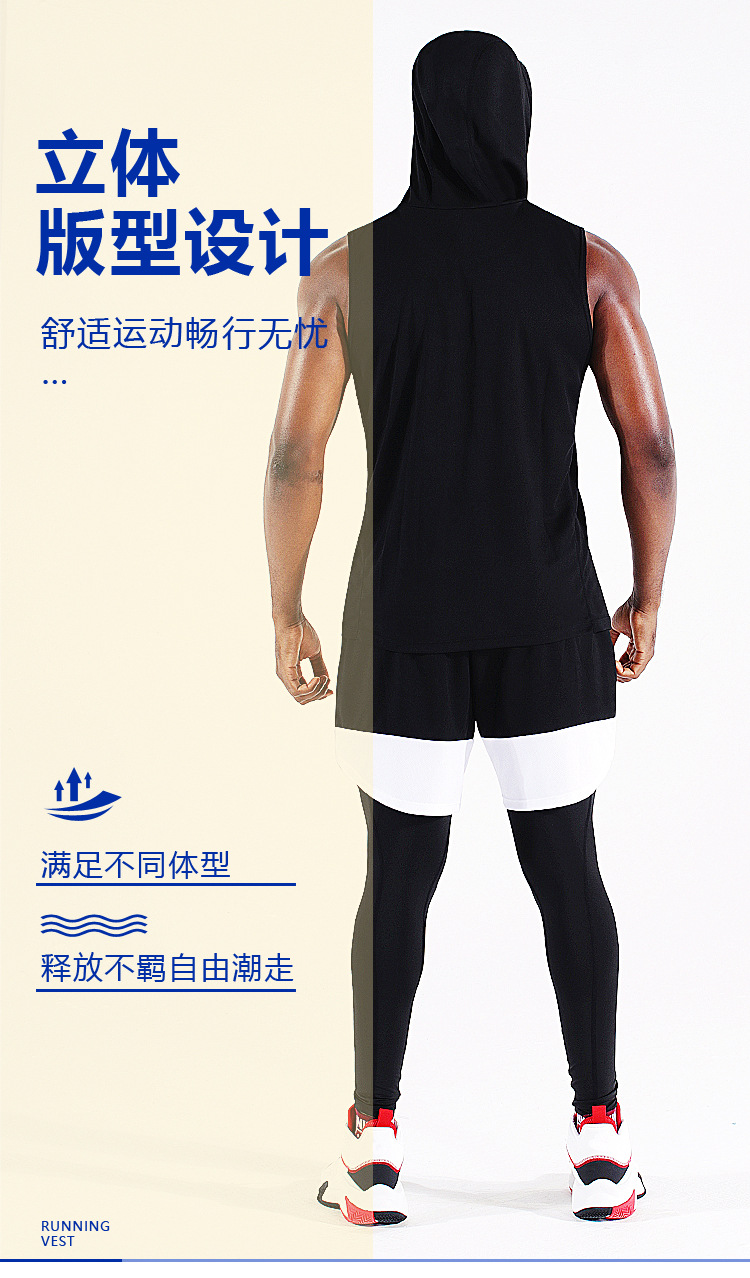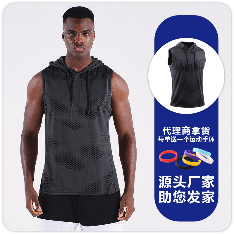 B5098 мужской спортивный жилет с капюшоном, быстросохнущий жилет без рукавов, топ с принтом, одежда для баскетбола, бега, марафона, фитнеса