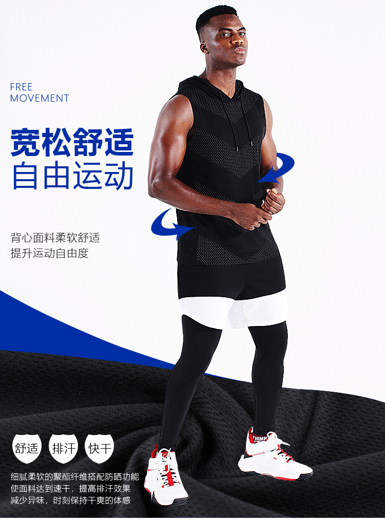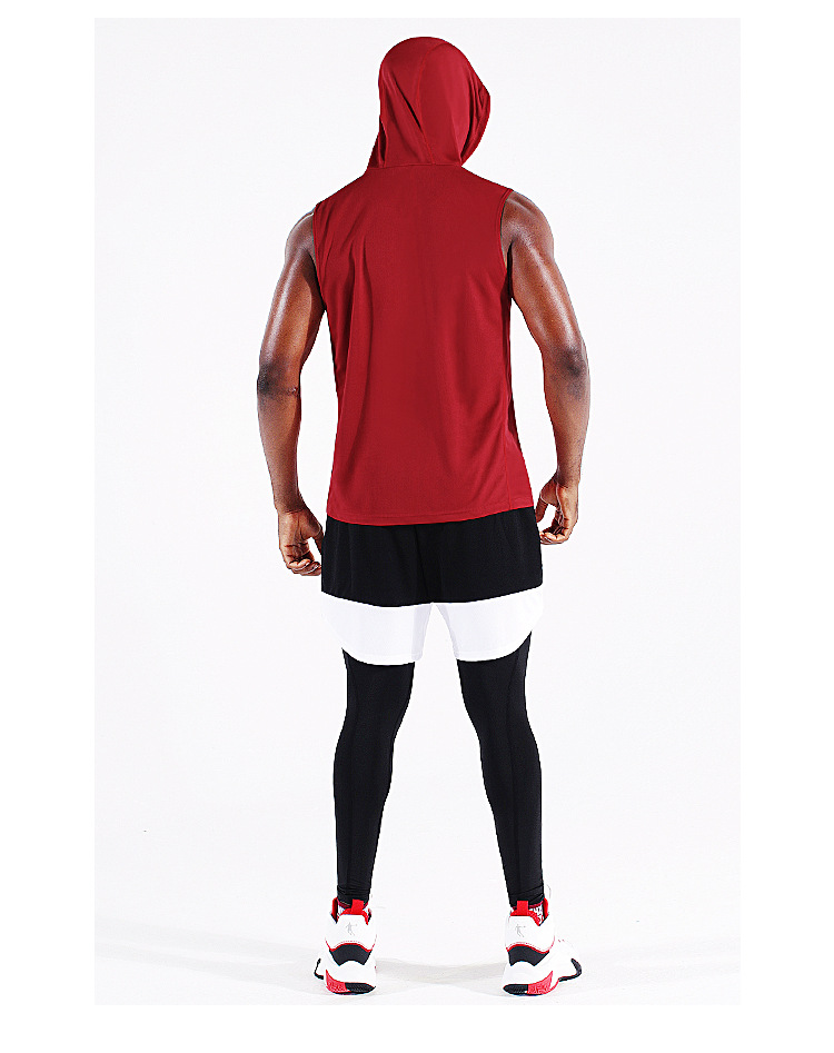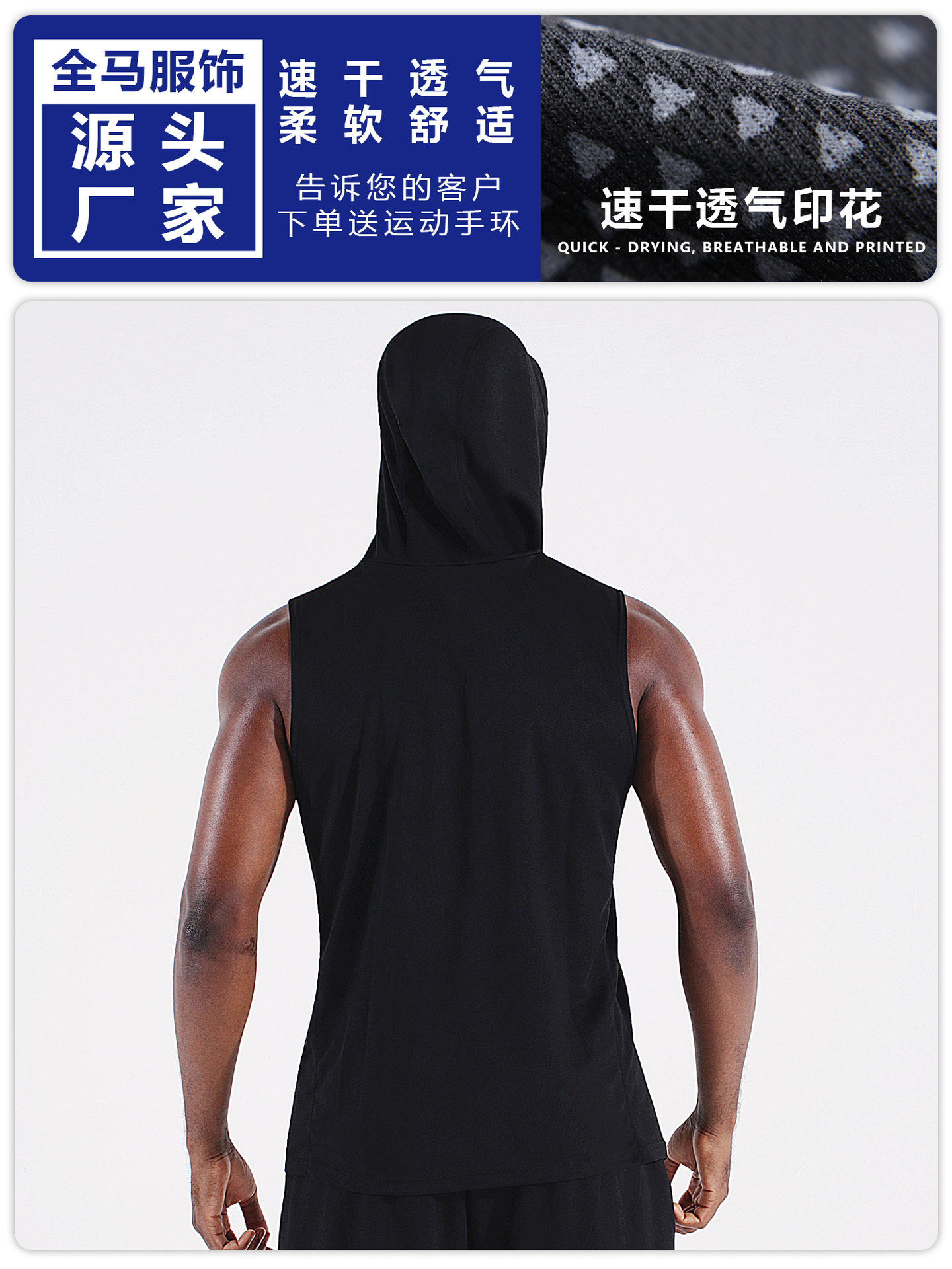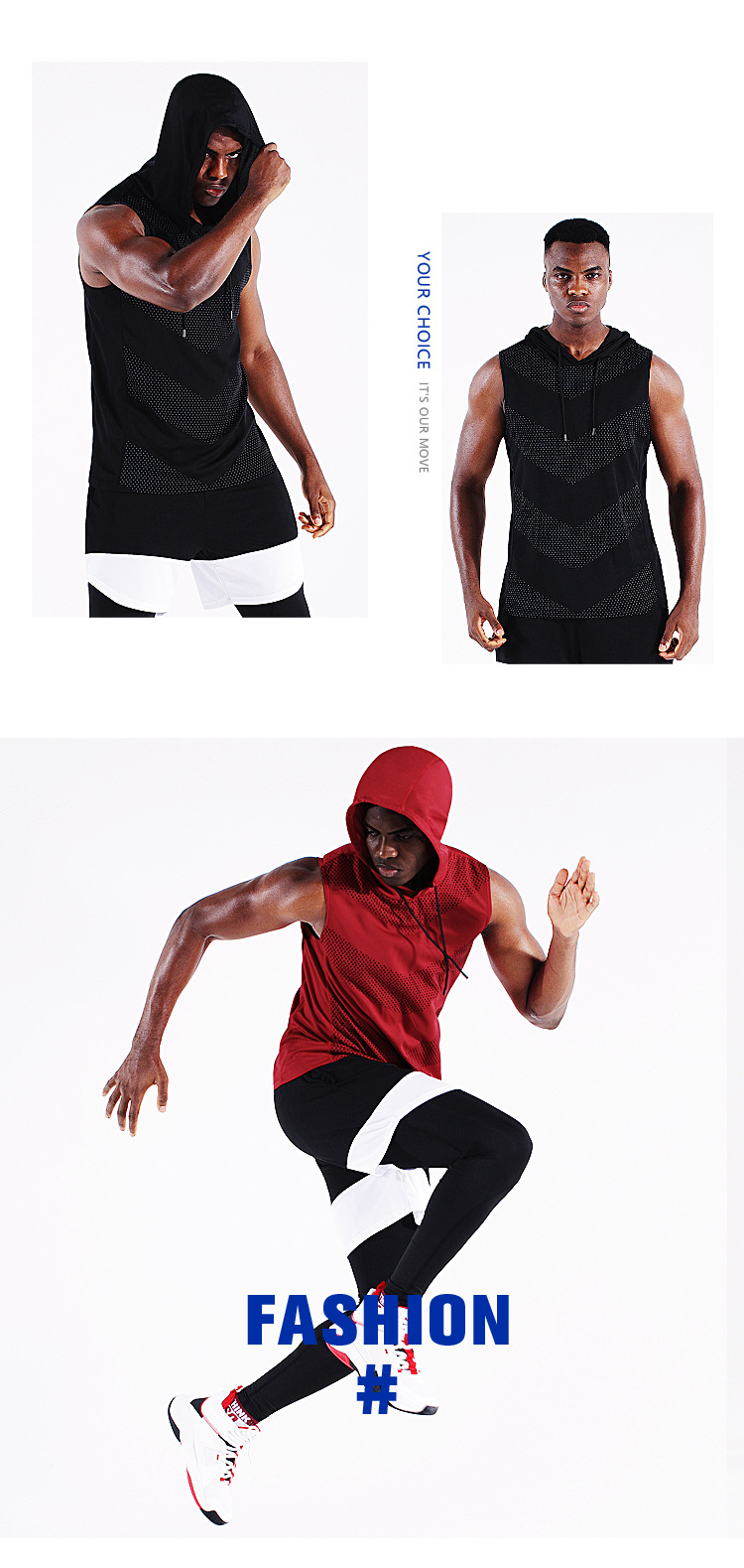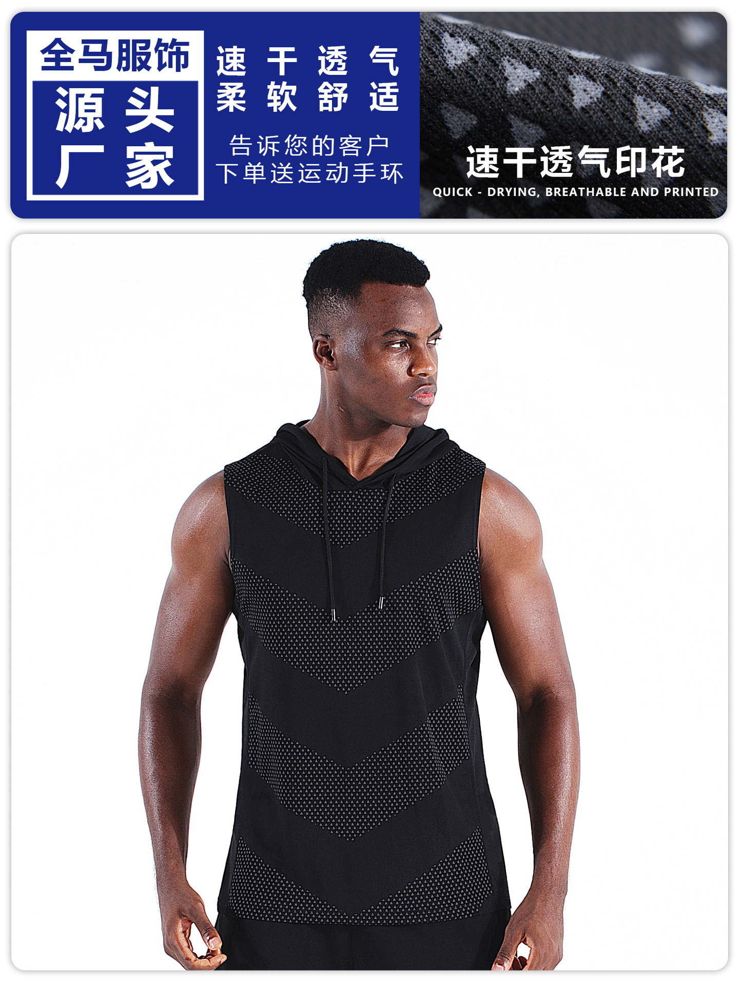B5098 мужской спортивный жилет с капюшоном, быстросохнущий жилет без рукавов, топ с принтом, одежда для баскетбола, бега, марафона, фитнеса