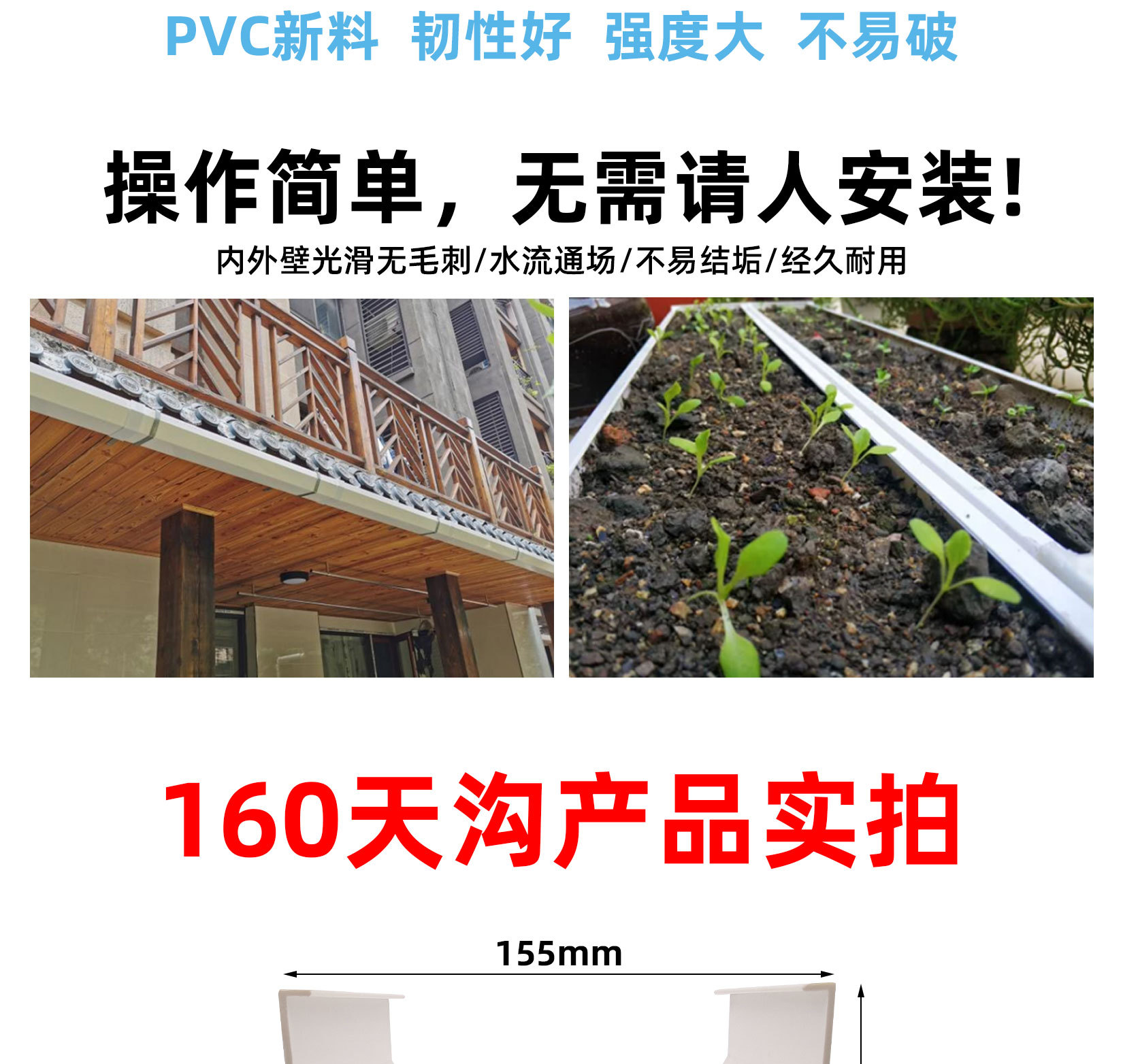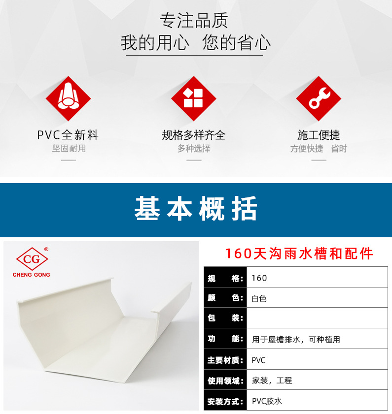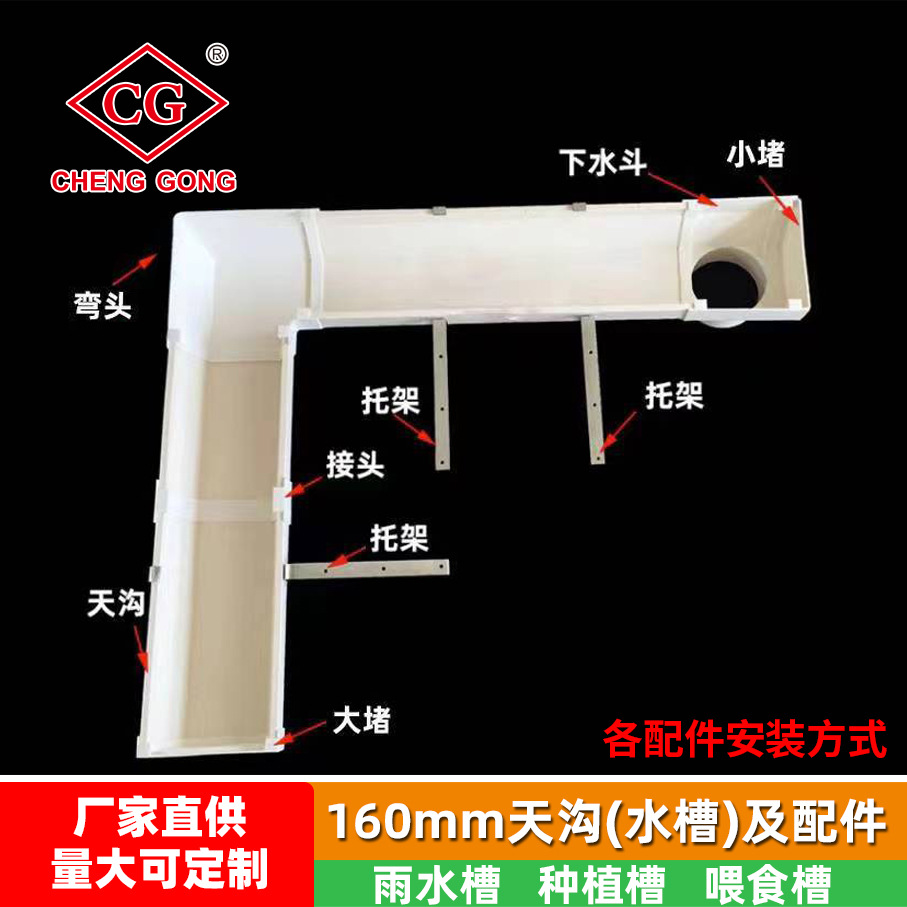 本公司系浙江及周边地区大的PVC天沟(水槽、檐沟)系列产品的厂家,所的天沟产品外观润白,富有亮泽,韧性好。产品畅销浙、闽、赣、皖等地区,广泛应用于普通屋檐、别墅、养殖场等的接排水。