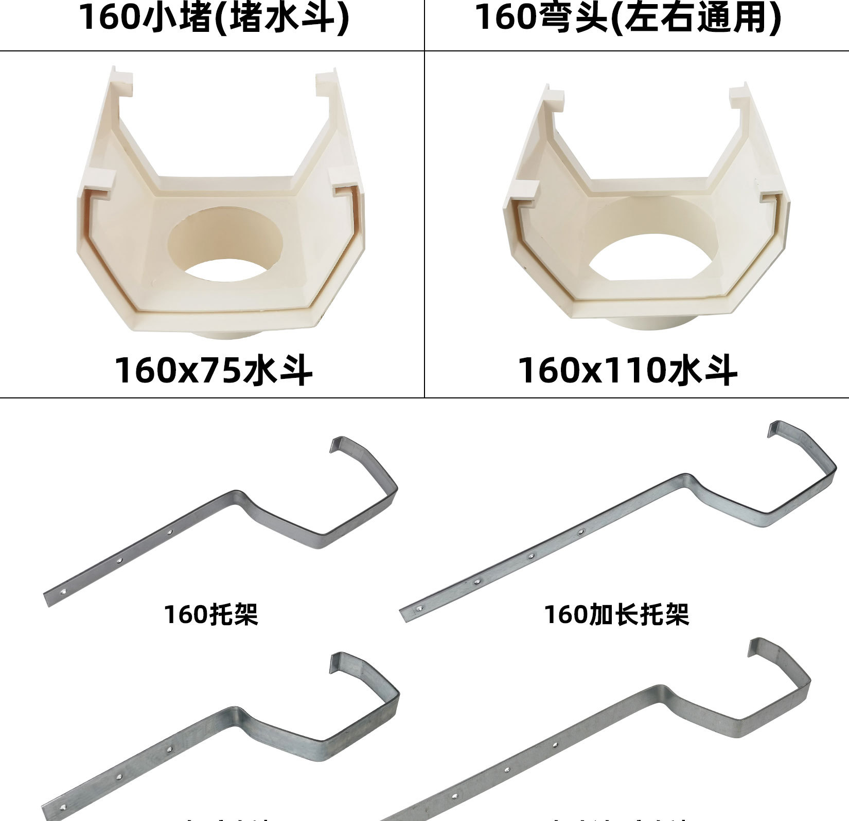 Скидки на целые пакеты аксессуаров!!!; Гutters толщиной 2,2 мм (4m шт.) Цена 1m; 160 разъемов (250 шт./упак.) Вся упаковка 10% off шт.; 160 больших блоков (300 шт/пакет) целый пакет 10% off; 160 маленьких заглушек (350 шт./пакет) целый пакет 10% off; Ведро для воды 160х75 (50 шт/пакет) целый пакет 10% off; Ведро для воды 160х110 (50 шт/пакет) целый пакет 10% off; Кронштейны обычные (300 шт/пакет) целый пакет 10% off шт.; Удлинительный кронштейн (250 шт./пакет) целый пакет 10% off; Расширенный кронштейн (250 шт./пакет) целый пакет 10% off; Удлиненные и расширенные кронштейны (200 шт./пакет) целый пакет 10% off; Кронштейн из нержавеющей стали (150 шт./пакет) целый пакет 10% off; 160 локоть (50 шт/пакет) целый пакет 10% off