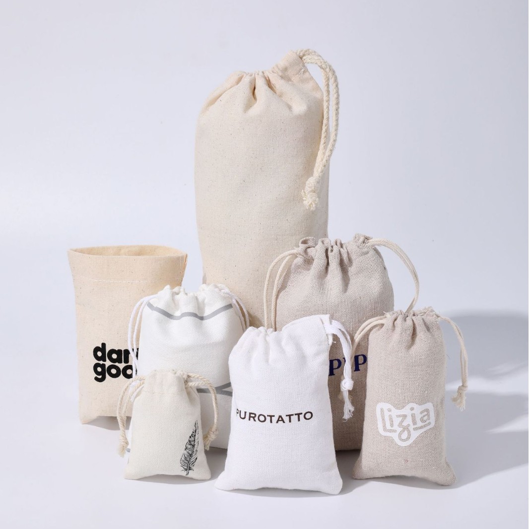 Индивидуальные хлопковые и льняные мешочки на завязках от производителя, изготовленные на заказ хлопковые и льняные мешочки для упаковки чая и продуктов с логотипом, нанесенным методом шелкографии.