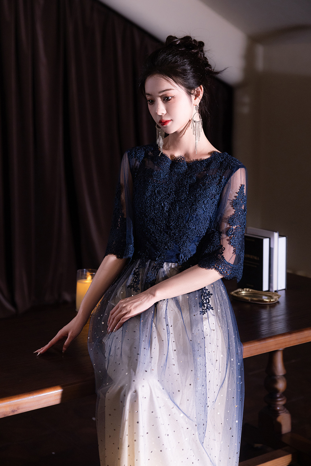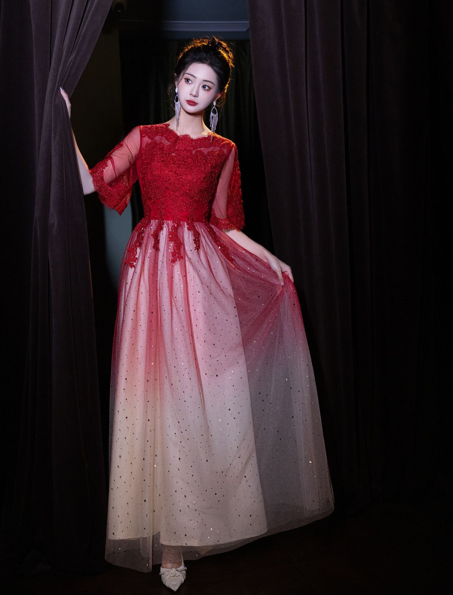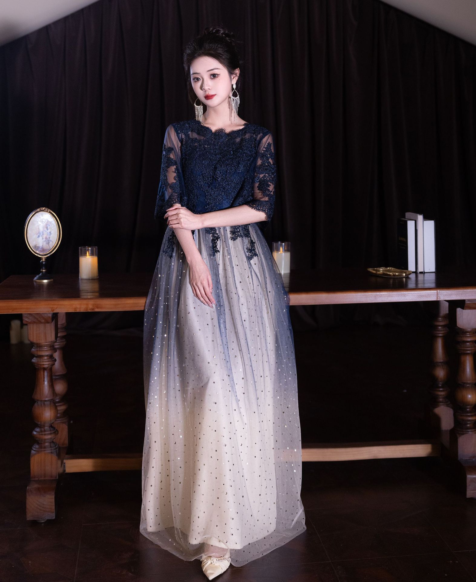 Вечернее платье для ежегодного собрания 2026, осенний экспортный стиль, элегантное и изящное банкетное черное платье, стройнящее фигуру, подходит для повседневной носки