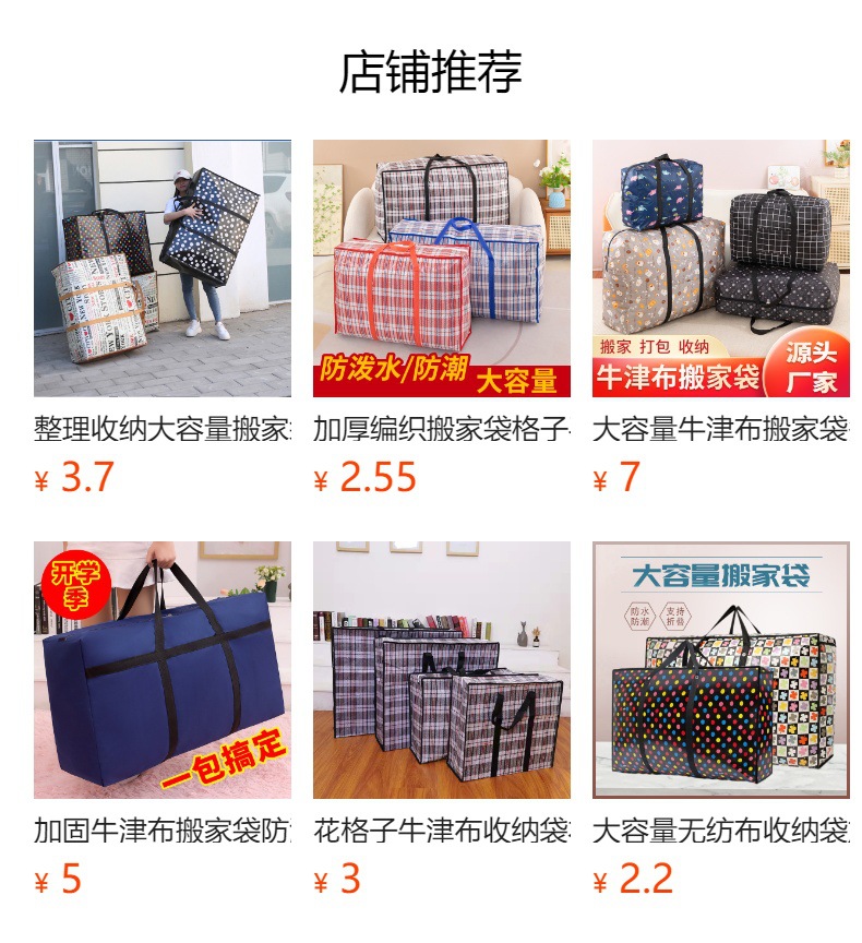 80#,90# 100# 本品适用于 搬家旅行 乔迁 学生装被褥 出门装行李 特点: 结实 容量大 可循环使用 可水洗