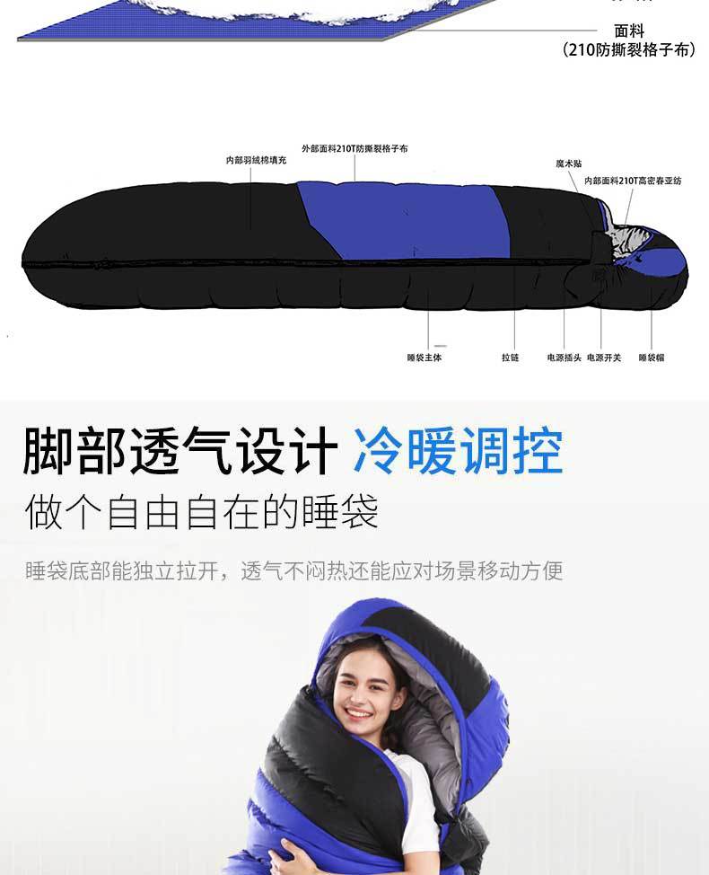 Спальный мешок для взрослых, одноместный, для активного отдыха, с электрическим подогревом, USB, теплый, моющийся, для весны, осени, зимы, для кемпинга, с подогревом