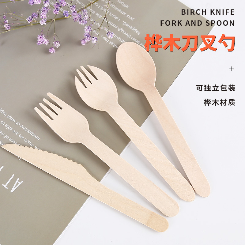 Разлагаемая одноразовая деревянная Березовая посуда деревянный нож деревянная вилка деревянная Ложка Вилка для фруктов ложка для мороженого горячее тиснение логотипа