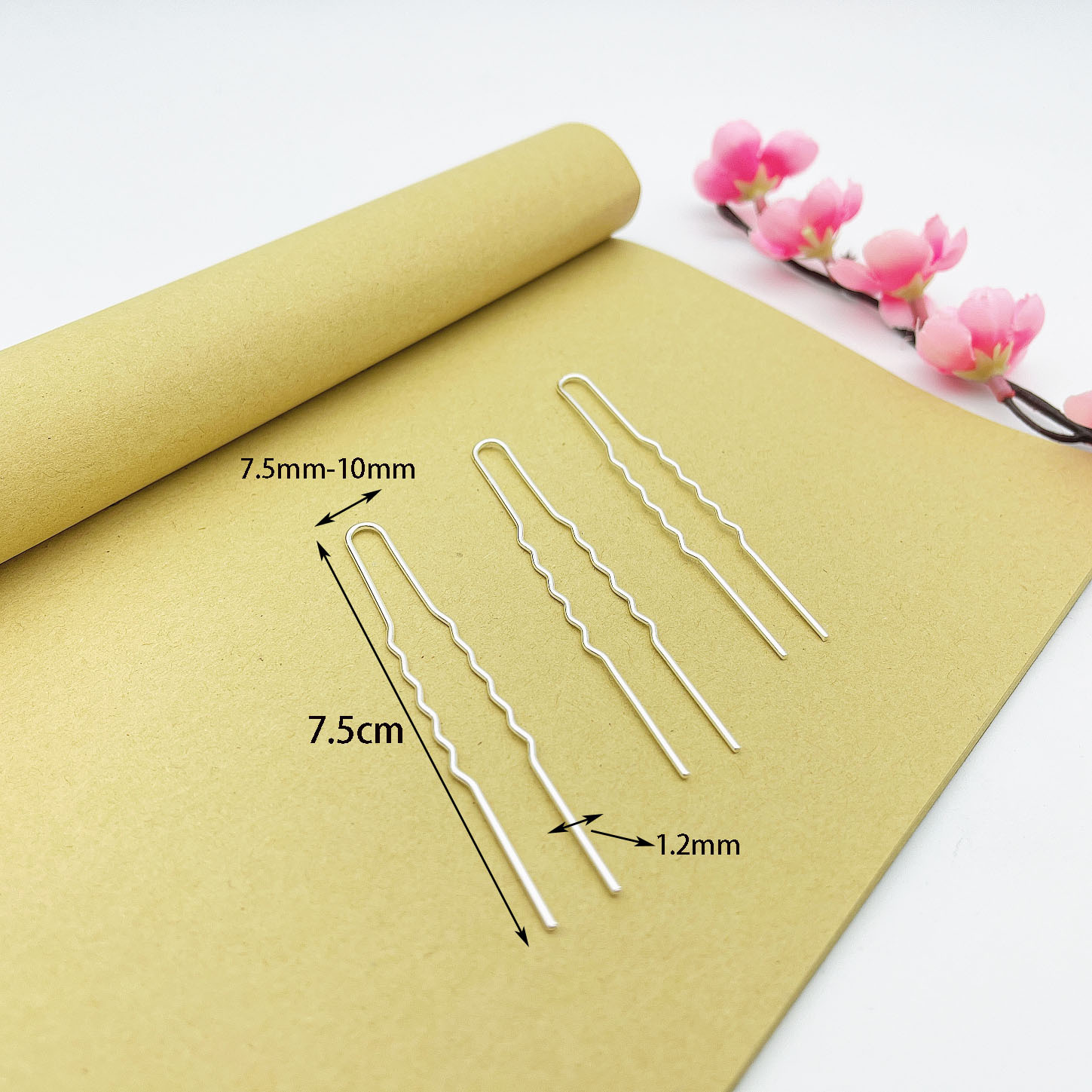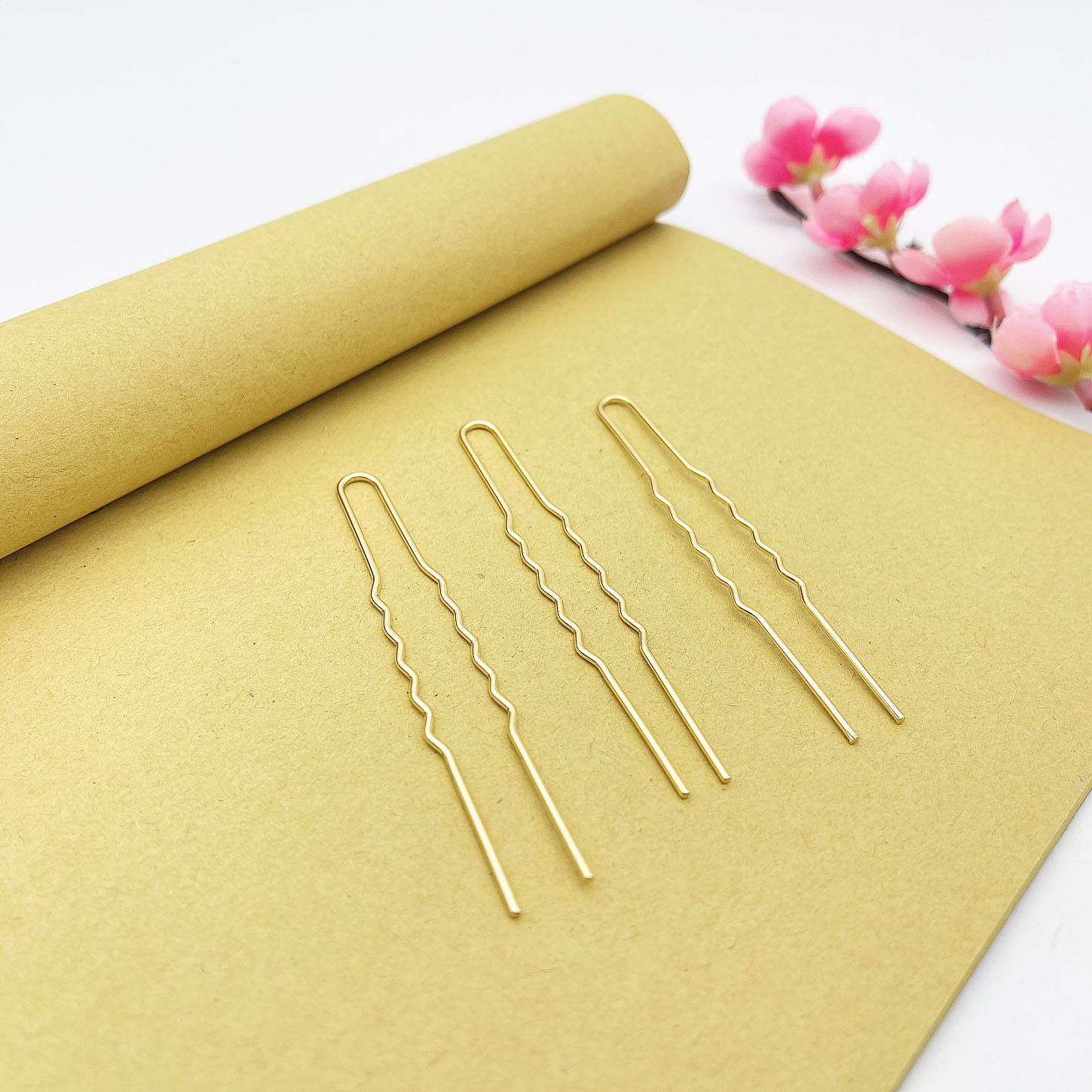 Медная U-образная волна Маленькая шпилька DIY Античная шпилька для головного убора Hanfu Ming, край, Шпилька для электрофореза, сохраняющая цвет, Шпилька для обертывания Niang Цветочные аксессуары