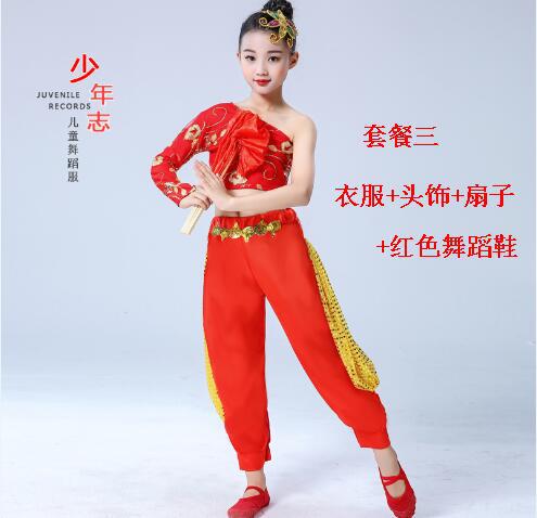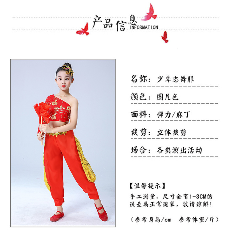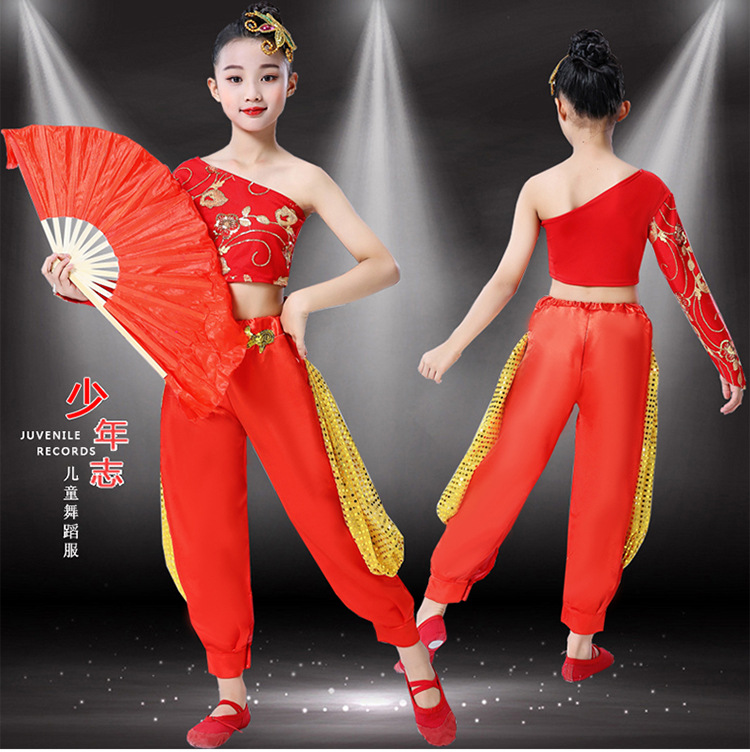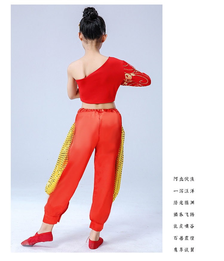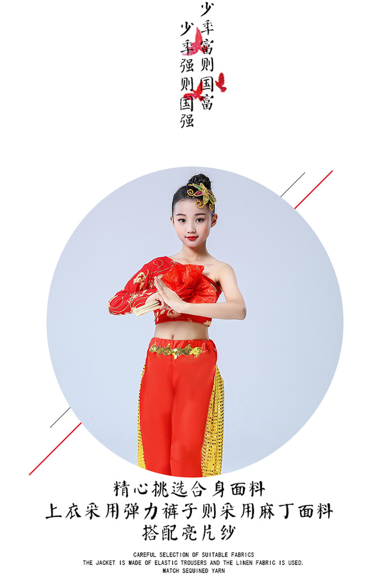Молодежный костюм для танца Чи Детский новогодний Весенний фестиваль Молодежный костюм для выступления сильного веера Сильная страна