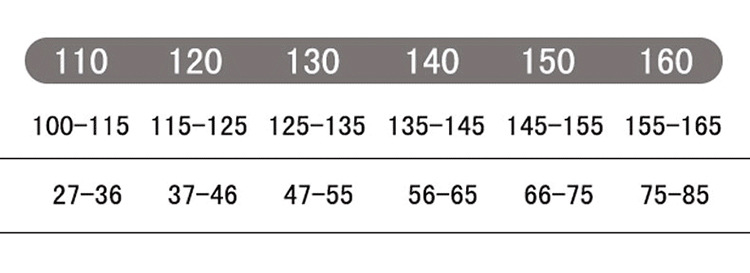 110 см; 120 см; 130 см; 140 см; 150 см; 160 см; 170 см