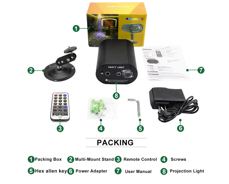Красное и зеленое двойное отверстие лазерный свет ночной клуб бар дискотека танцы сцена свет Голосовое управление стробоскоп волшебный шар свет водяная рябь узор свет